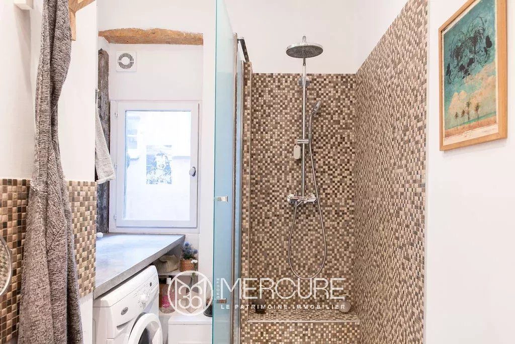 This charming 104 m² flat, whose main room of 57 m² offers space and comfort, is composed of a large living room with open plan kitchen, a renovated shower room/laundry room; then on the first floor a parental bedroom and a second bedroom.