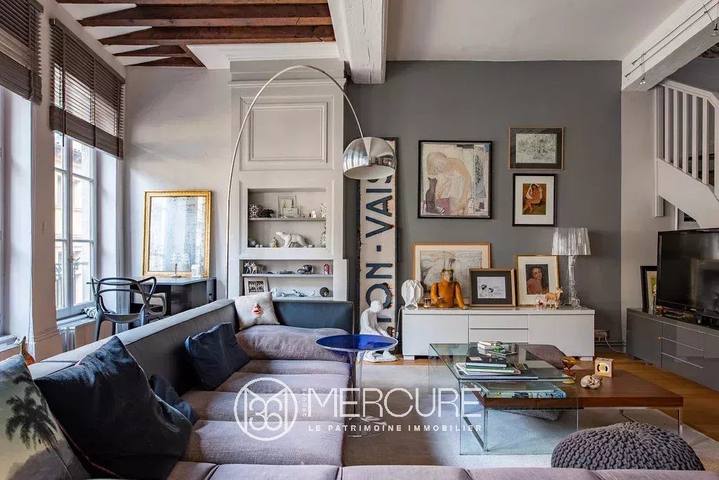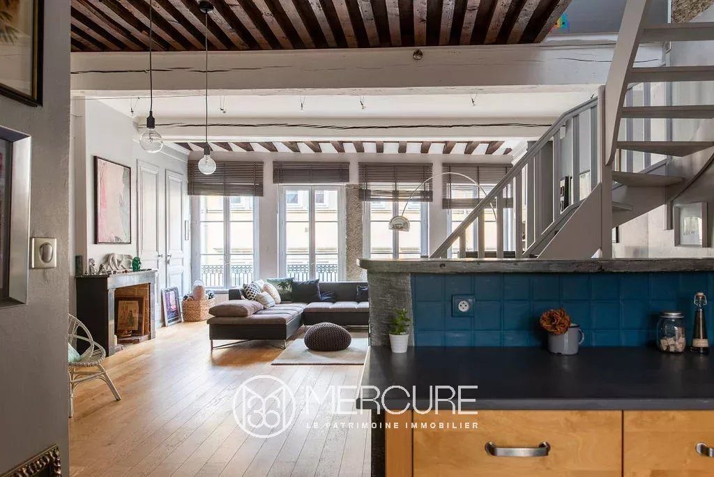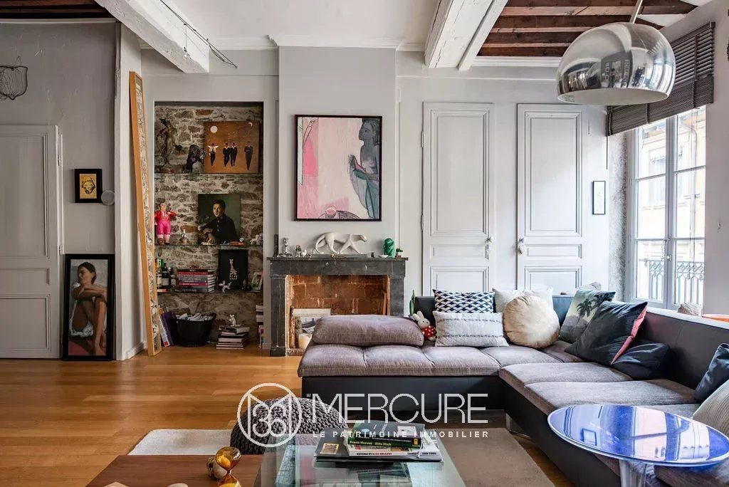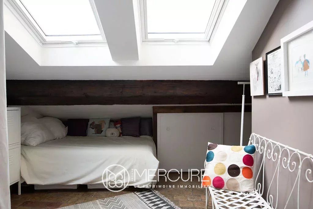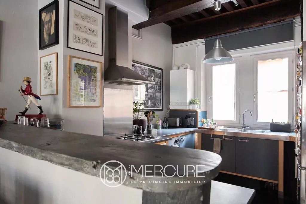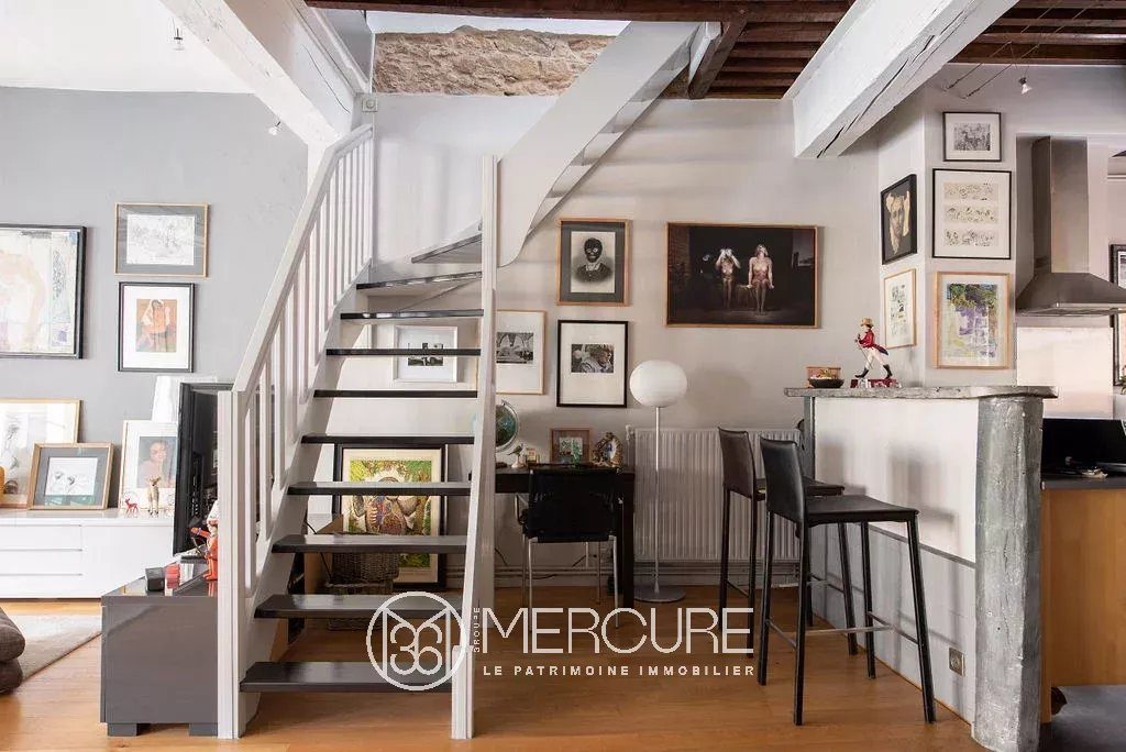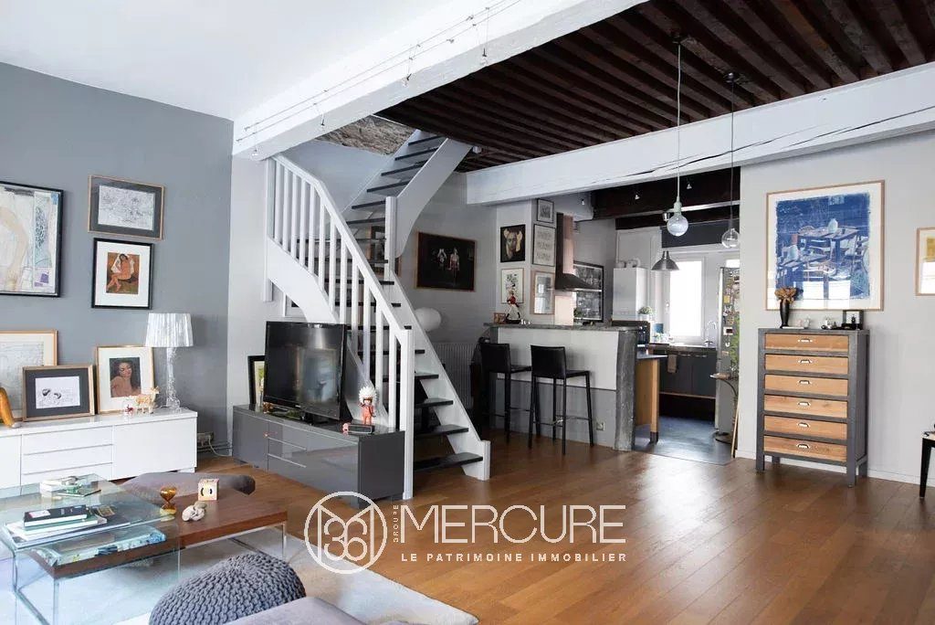 This duplex apartment with its preserved decorative features: fireplaces, wood panelling, French ceiling, blinds, oak parquet flooring and stonework.