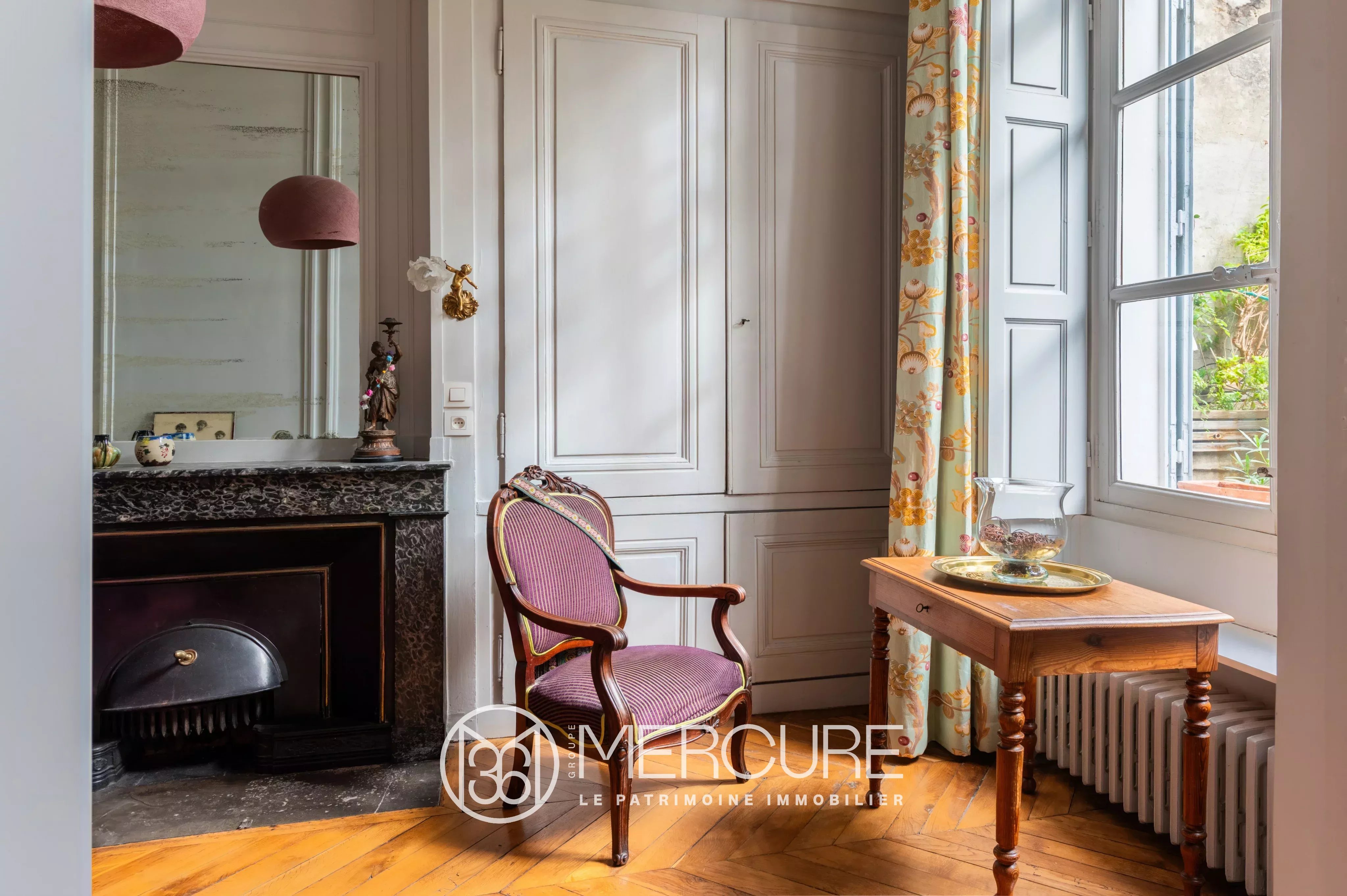 The total and demanding renovation has made it possible to magnify all the charm of this apartment steeped in history, the existing noble materials (parquet floors, moldings, fireplaces, stones, cement tiles, etc.), offering a very pleasant living environment in a location majestic with its very beautiful ceiling heights of 4.40 meters.