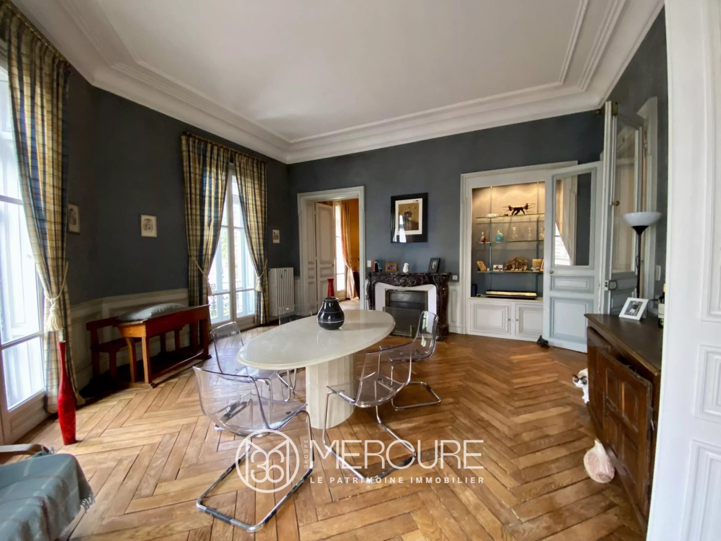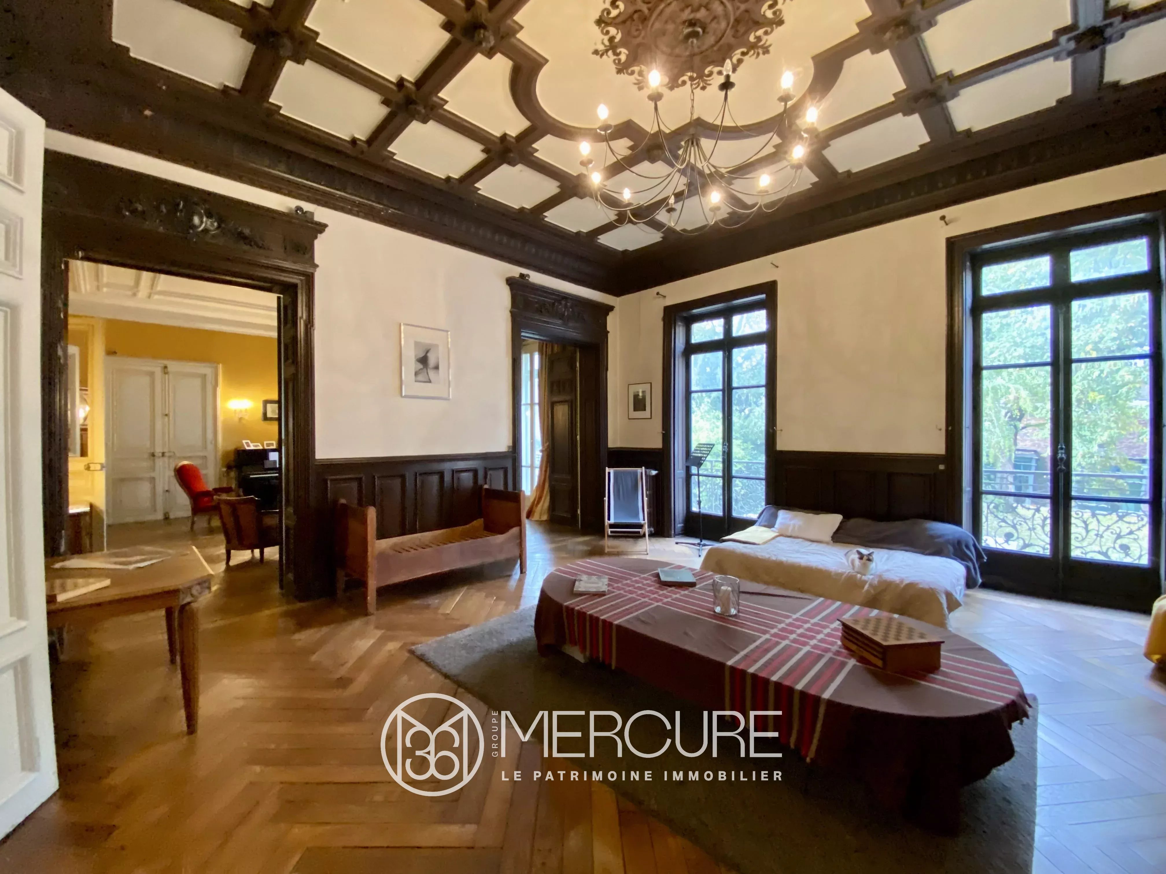 In the city centre, beautiful Haussmann-style 8-room flat on the 1st floor with 312.58 sqm of living space. 4 bedrooms (possibility of 5 or even 6). It is characterised by the generous size of its reception rooms and the luminosity offered by its large windows with internal shutters (triple exposure: west, north and south), some of which overlook wooded parklands. This pleasant, charming flat with its open-plan layout offers spacious living areas, thanks in particular to its high ceilings (3.63 m) and its decorative features, all of which are period: Corton stone stairway, French and moulded ceilings, wainscoting, fireplaces, herringbone parquet flooring. Its 3 balconies with wrought iron railings cover 23.50 sqm. The 6 sqm south-facing terrace adjoins the modern, fully-equipped kitchen. Bathroom/shower room adjoining the master bedroom. Possibility of 2nd bathroom. In good condition, but could do with some refurbishment. Cellar, storage room and 3 attics. Property sold subject to co-ownership status. 38 lots. No proceedings in progress. Co-ownership trimester charges for 2023: € 450. Flat very close to shops, services, schools and transport. Possibility of purchasing an additional garage and/or parking space in the private courtyard belonging to the co-ownership (electric gate) at the bottom of the property. VIRTUAL TOUR AVAILABLE.
