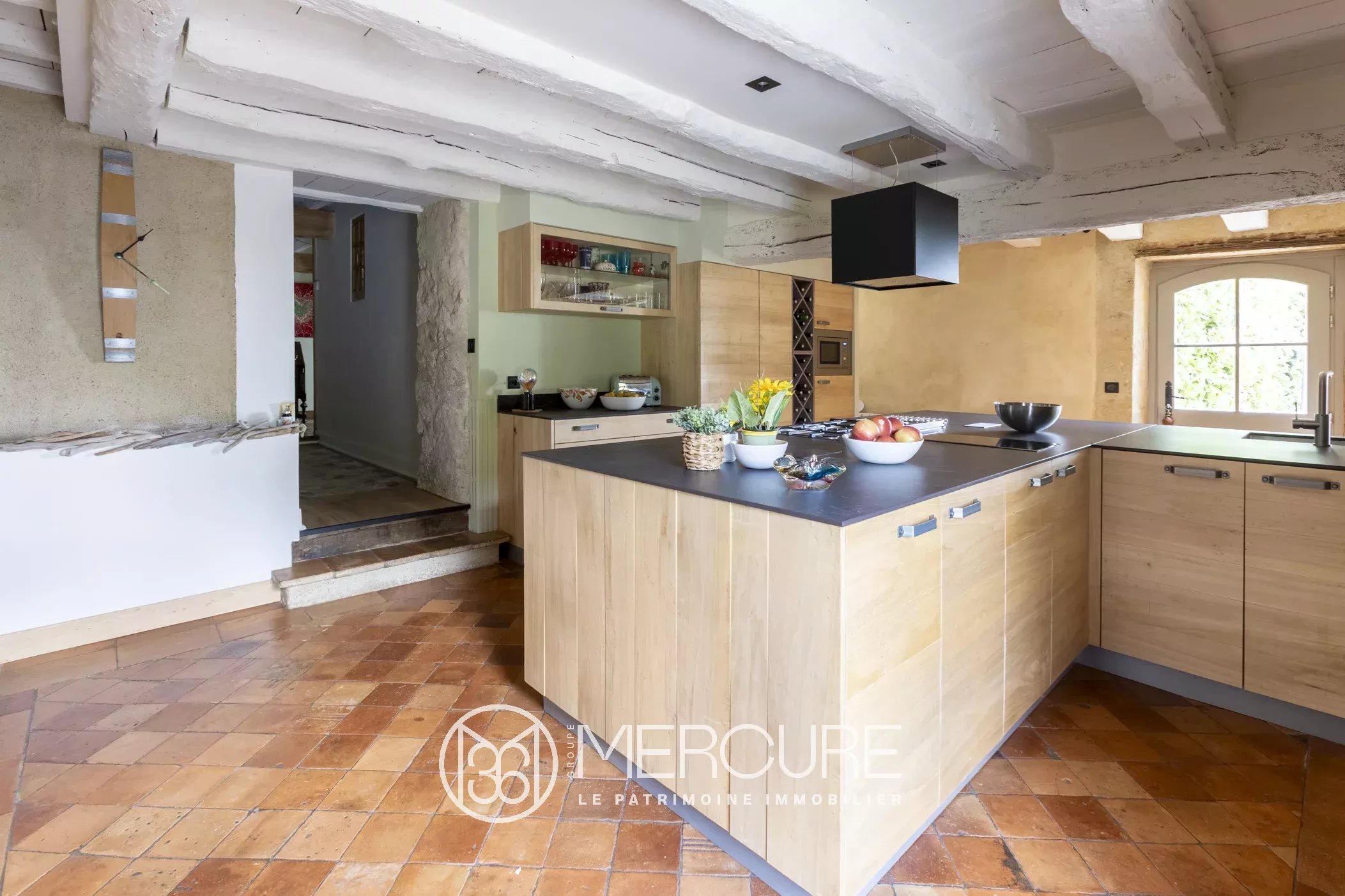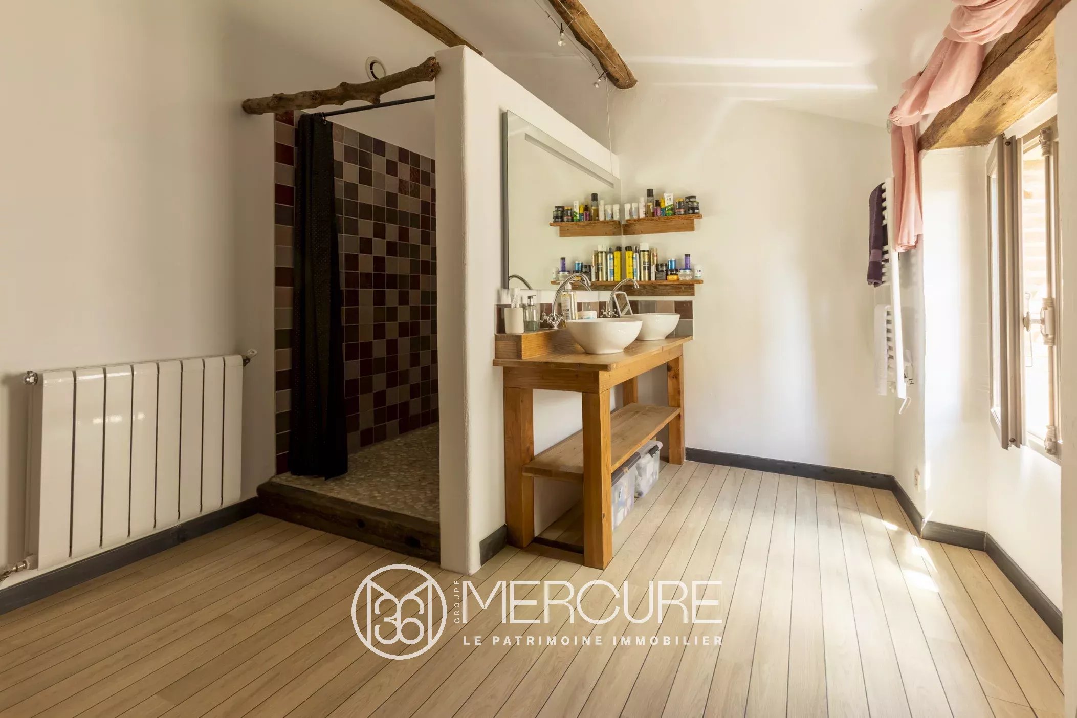 To enjoy the outdoors, there is an enclosed garden with a magnificent view of the Montagne Noire, where a swimming pool has been cleverly placed to maximize sunlight, as well as a lighted pétanque court and a shaded arbor equipped with a barbecue.