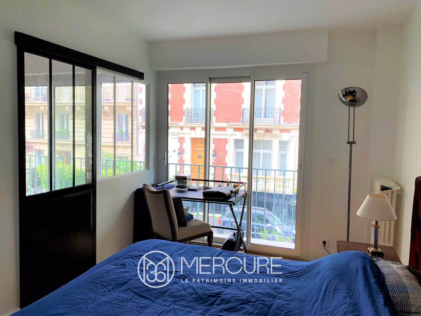 Location meublée – Paris 16ème Porte Maillot, dans une petite rue calme et charmante bordée d’hôtels particuliers, appartement de 50 m² rénové au 1er étage d’un immeuble 1960. Il comprend une pièce de séjour avec cuisine ouverte entièrement équipée, une chambre principale et une chambre plus petite, et une salle de douche avec wc. Petit balcon courant en façade, lumineux, exposition sud, parfait état, placards – loyer 1.750 euros charges comprises, dépôt de garantie 1.700 euros, honoraires locataire 750 euros TTC en ce compris les frais d’état des lieux.
