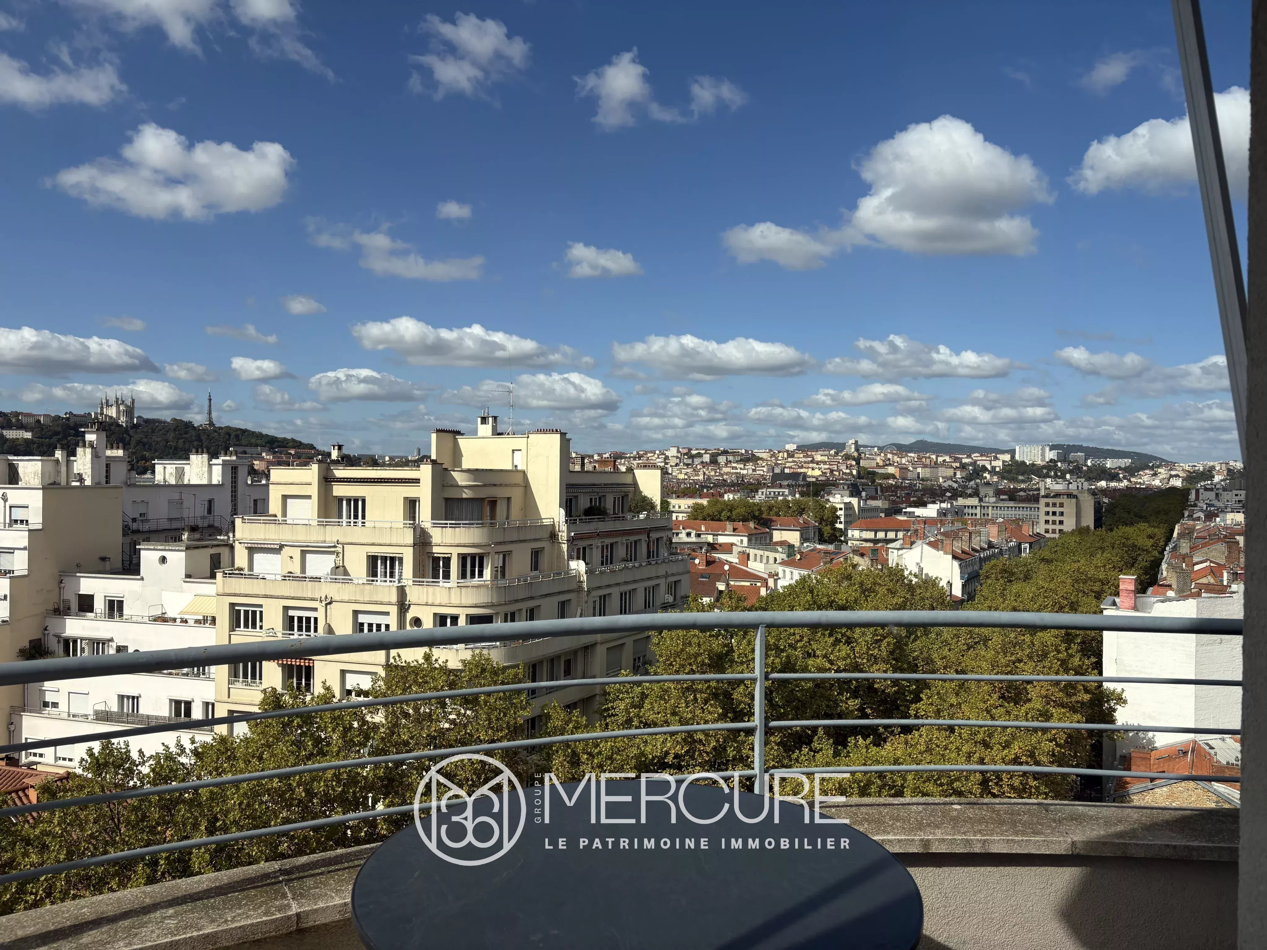 Top floor, very pleasant 75.25 m² apartment in good condition with magnificent views of Lyon, the Monts du Lyonnais and the Bugey.