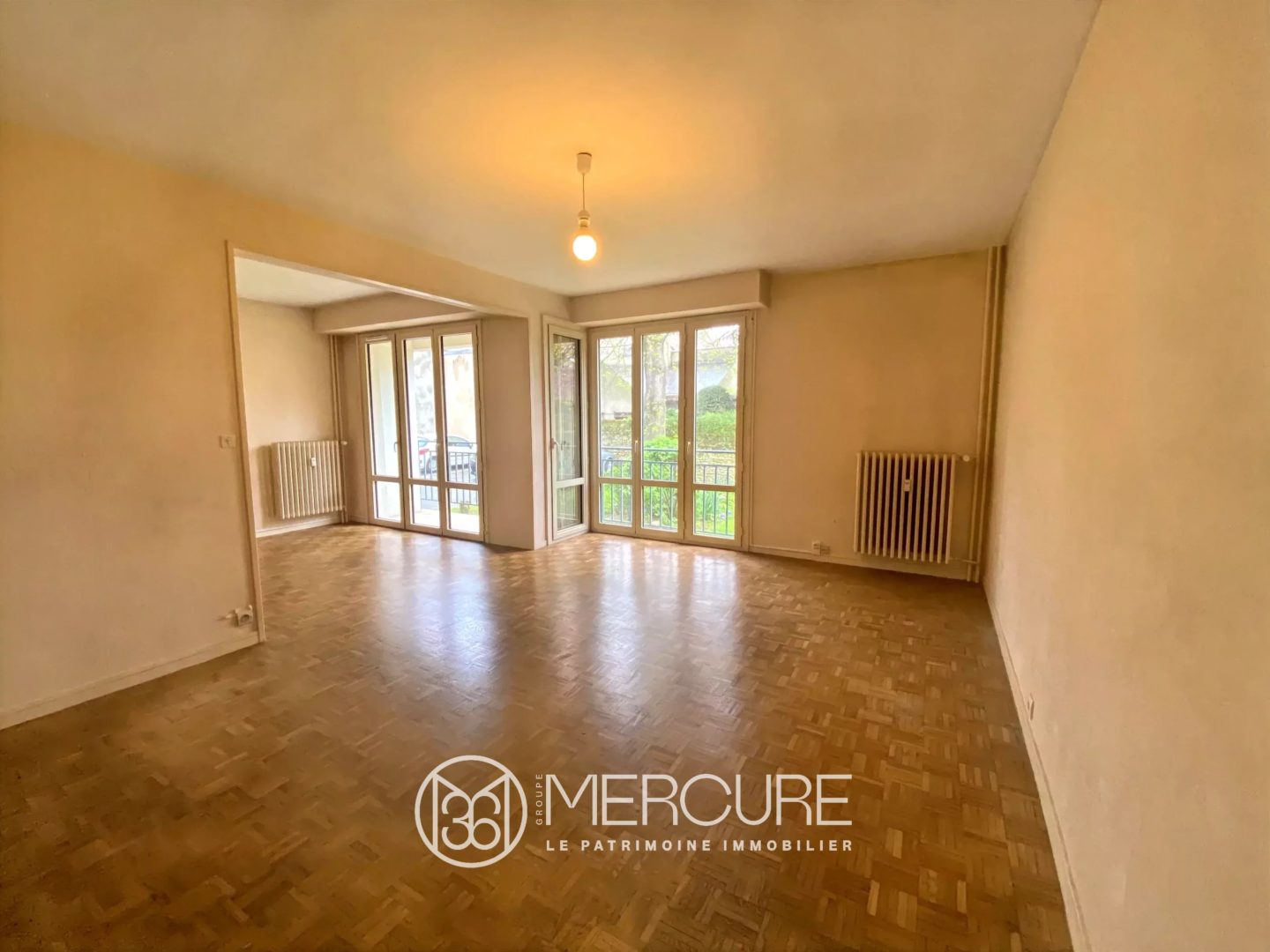 POITIERS, Quartier Notre-Dame. En rez-de-chaussée surélevé, cet appartement de type III de 75.54 m² à rafraichir offre un séjour sur parquet collé ouvert sur un balcon, un dégagement, un water-closet, une cuisine aménagée et équipée sur carrelage, un séchoir, un dégagement avec placards, deux chambres avec placards, une salle d’eau sur carrelage. Cave et emplacement de parking en sous-sol.