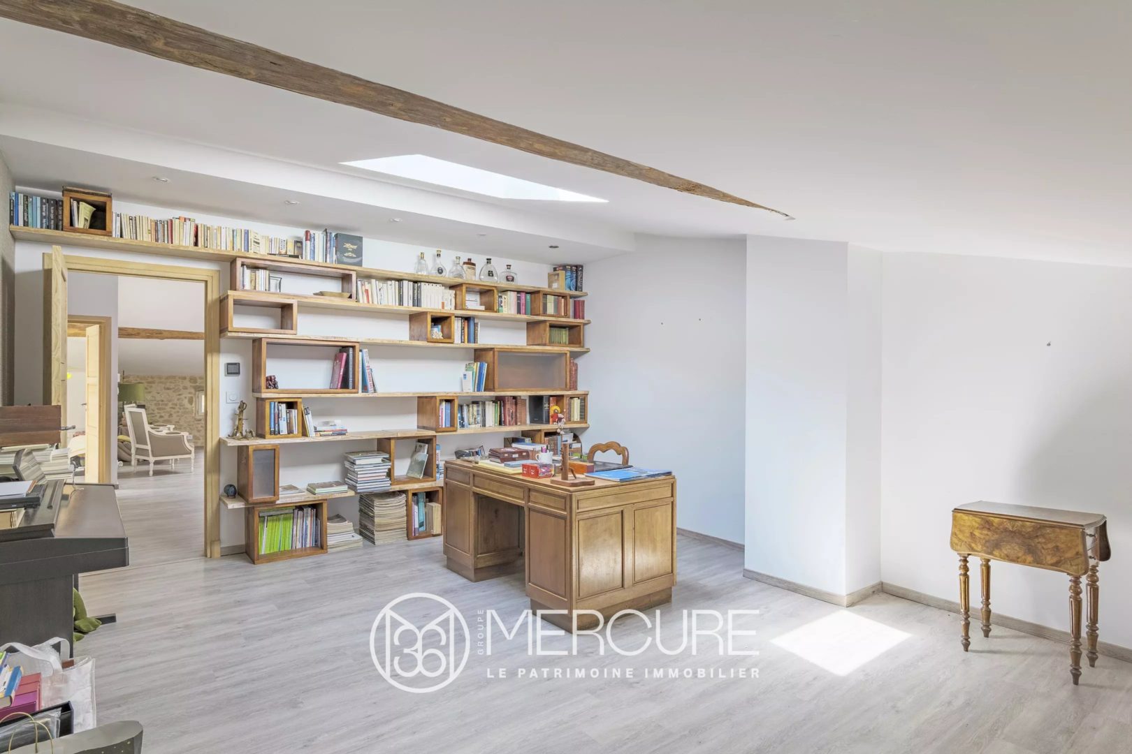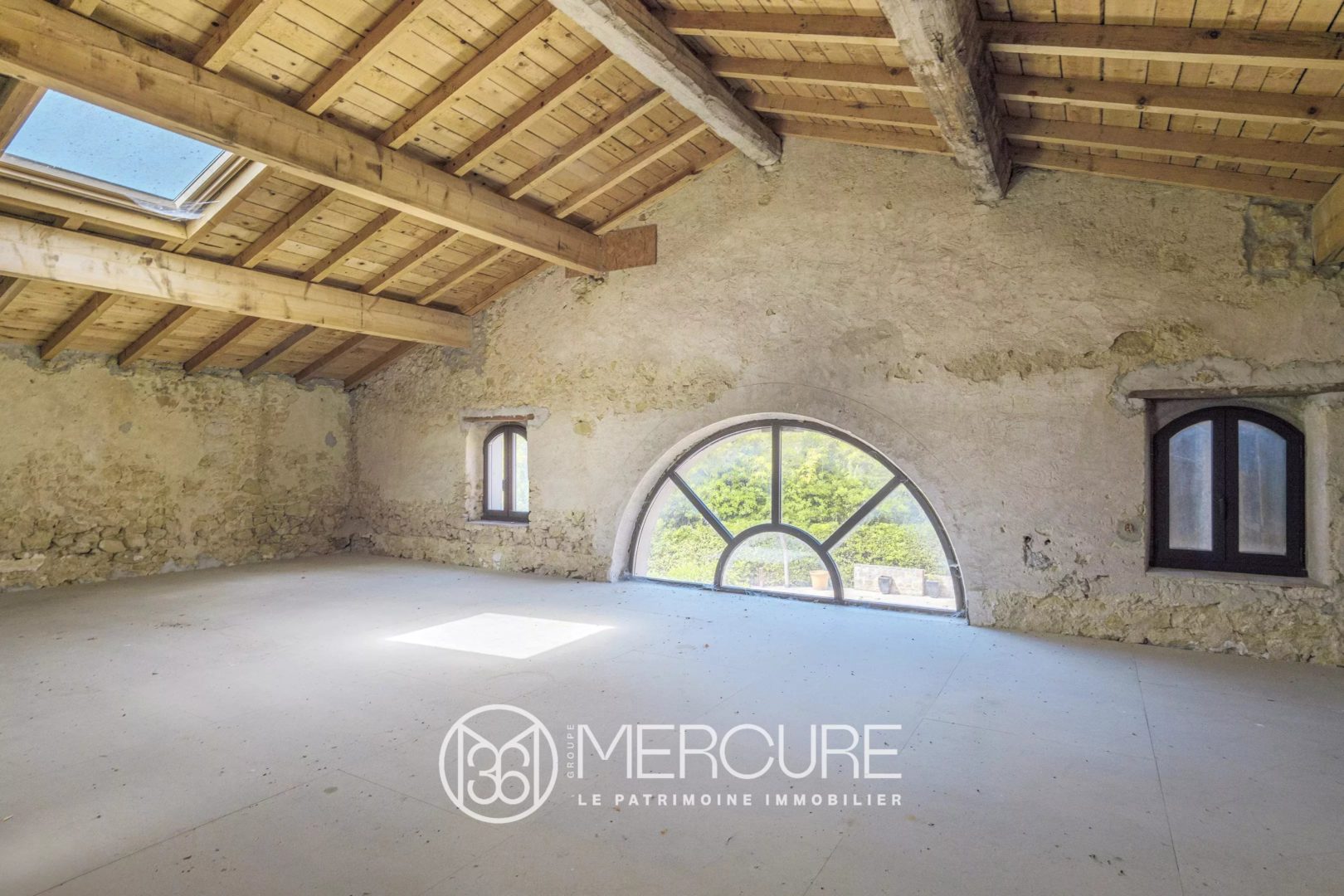 The outbuilding, a former cellar used as a large living room, has a huge aluminum French window opening onto the swimming pool, which is extended by a garden planted with olive trees. Upstairs is a large games room with a beautiful roof structure.