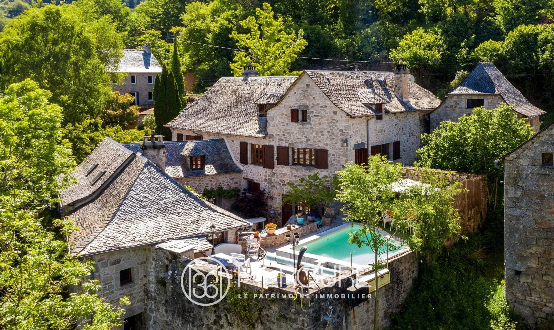 Lovers of Aveyron heritage will appreciate the charm of this house with its four interconnected buildings, set in a wooded setting of Douglas fir and chestnut trees, in the heart of a small hamlet.