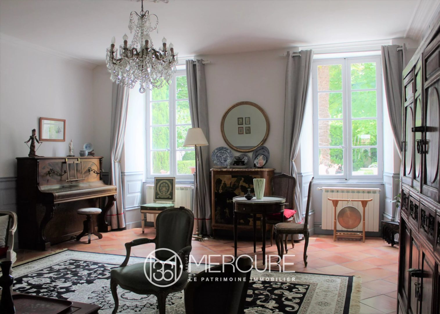 Original features were preserved as the windows, the marble fireplaces, wooden panels, wooden and terracotta floors, mouldings, rosettes… This cozy house was modernised with a new central heating provided by a heat pump system, mains drains, and roof insulation.