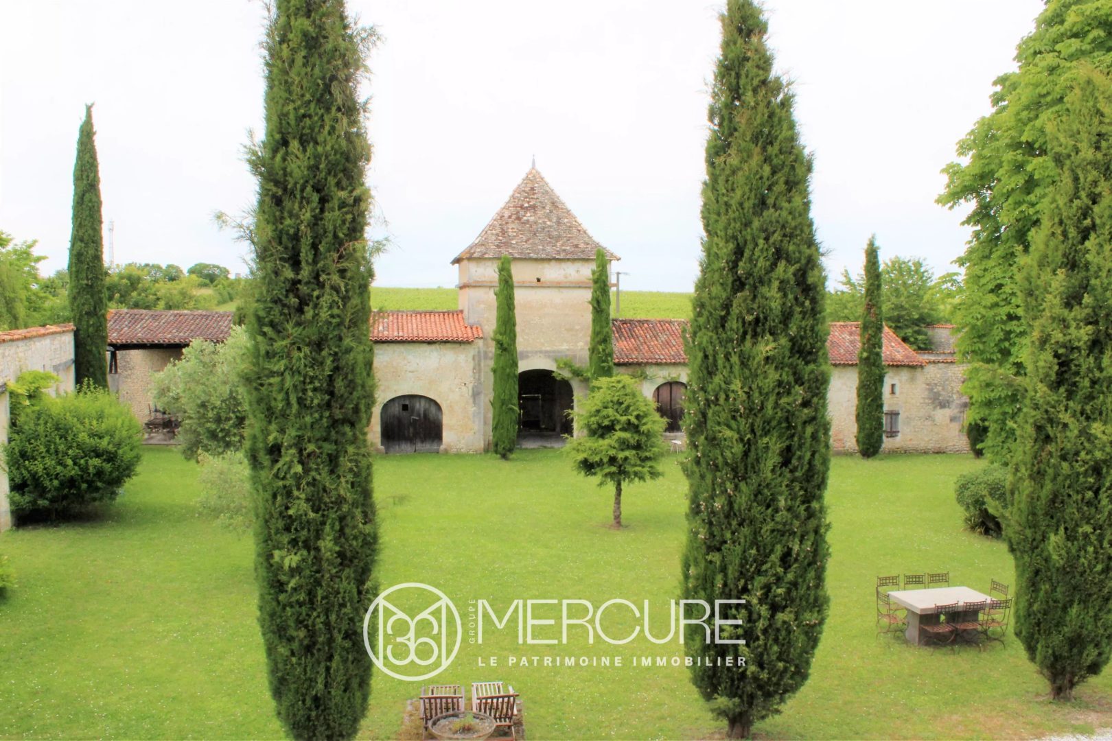 Concerning the outbuildings, a majestic dovecote with a stone staircase and its 1200 dove-holes, and other buildings consisting of a summer kitchen, two barns, and a former and rare crush pad, witness of the past of the vineyard property. On the West wing of the property, the former bakery with its bread oven converted in dining room, a large reception room of nearly 100 sq.mt as living space, a gite fully converted, a laundry, a workshop, a wood shed and a space enclosed with walls of nearly 400 sq.mt., open skies arrangement for outdoor dining. At the opposite, a restored outbuilding of nearly 350 sq.mt. with adjoining openbarn that could be converted in an accomodation or commercial space. The ensemble is surrounded by meadows and trees.
