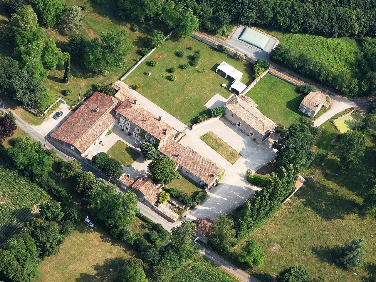 FOR SALE BETWEEN NIORT AND LA ROCHELLECharming residence surrounded by its outbuildings set in 8.75 hectare of park and meadows. Ideal for a reception activity, the property benefits from a barn fully equipped for the organization of events. There is also a lodge dedicated to this activity.The property consists of a main house surrounded by its outbuildings with entrance courtyard, a separate gite with small courtyard /private garden. A beautiful barn converted for reception /events, a small house in need of restoration, two other outbuildings which used to be dovecotes, and bread oven.MAIN LIVING ACCOMMODATIONOn ground floor- Large entrance with stone floor and wooden staircase, direct access to courtyard and terrace (29 m²)- Large living room with parquet floor and fireplace (42 m²)- Large dining room with parquet floor and fireplace (29 m²- Corridor /passageway (6 m²)- Study with parquet floor and fireplace (13 m²)- Living room to redecorate with tiled floor and fireplace (25 m²)- Kitchen to redecorate with tiled floor and fireplace (19 m²)On first floor- Landing with parquet floor (14 m²)- Large parents bedroom with parquet floor and fireplace (29 m²) with dressing (10 m²) and private bathroom (to renovate) (8 m²)- Three bedrooms with parquet floor which two of them have a washbasin and two other with fireplace (15 m² each)- 2 bathrooms- WCOn second floor- Landing (9 m²)- Bedroom (15 m²)- 2 attics ready for conversion (44 et 52 m²)THE OUTBUILDINGS- Workshop with attic above- Former stables- Cellar with fireplace- Horse boxes- Room with well /water tank and equipment for water treatment- Boiling room with oil boiler Viessmann (5 years)- Play room- Small outbuilding for garden toolsTHE GITEAdjoining to the main house, with separate entrance, the gite is set on one storey. It consists of :- Entrance / corridor (4,50 m²)- Large bedroom (16 m²)- New bathroom (6 m²)- Bedroom (12 m²)- Kitchen (11,40 m²)- Living room with fireplace (20 m²)- Shower room /wc (8 m²)- WC for handicapped people with direct access to reception space (4,80 m²)- Locker (3 m²)THE RECEPTION SPACE- Large barn (143 m²) fully restored for reception purpose. Revenues could be delivered upon request.- Catering space (23 m²) and corridor (9,50 m²)THE OTHER OUTBUILDINGS- A small independent house to restore on 2 levels which could be another gite or caretaker’s cottage- Two other outbuildings, once used as a dovecote for the first one and bread oven for the second oneOUTDOORS- Front courtyard with beautiful entrance gate- Terrace on the back of the main house- Park and meadow crossed by a river- Beautiful path and meadow surrounded by treesLOCATIONSouth of NIORT15 minutes from the town center and TGV station40 minutes from La Rochelle and Ile de Ré