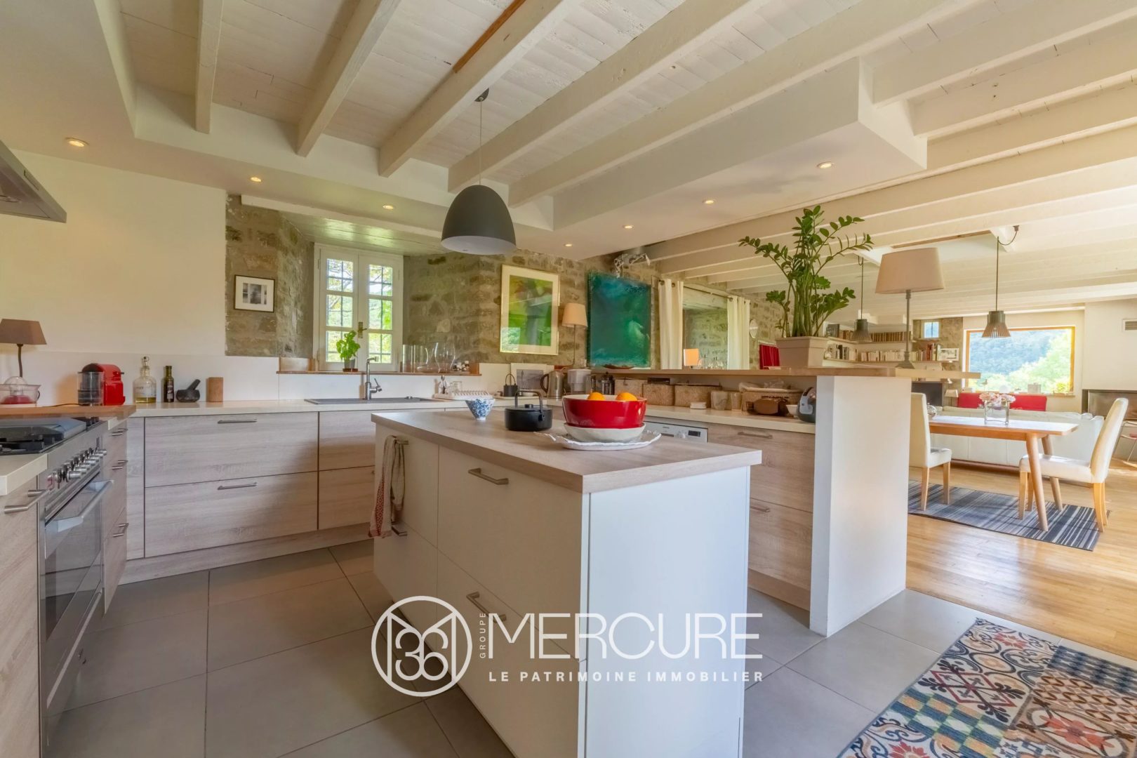 The first floor features a 60 m² living room with open kitchen, opening onto a splendid covered terrace. A large ground-floor bedroom with private bathroom, shower and sauna. A beautiful vaulted bedroom with its own shower room and toilet.