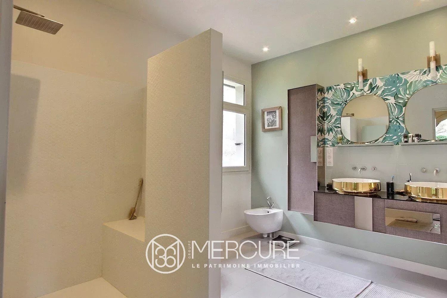 divided into 9 main rooms including a large living room of 80m² opening onto a vast terrace facing South/East, and a TV room / library. 4 bedrooms including one of 30m² en suite with a shower room and a dressing room and opening onto a patio. 2 additional shower/bath rooms.