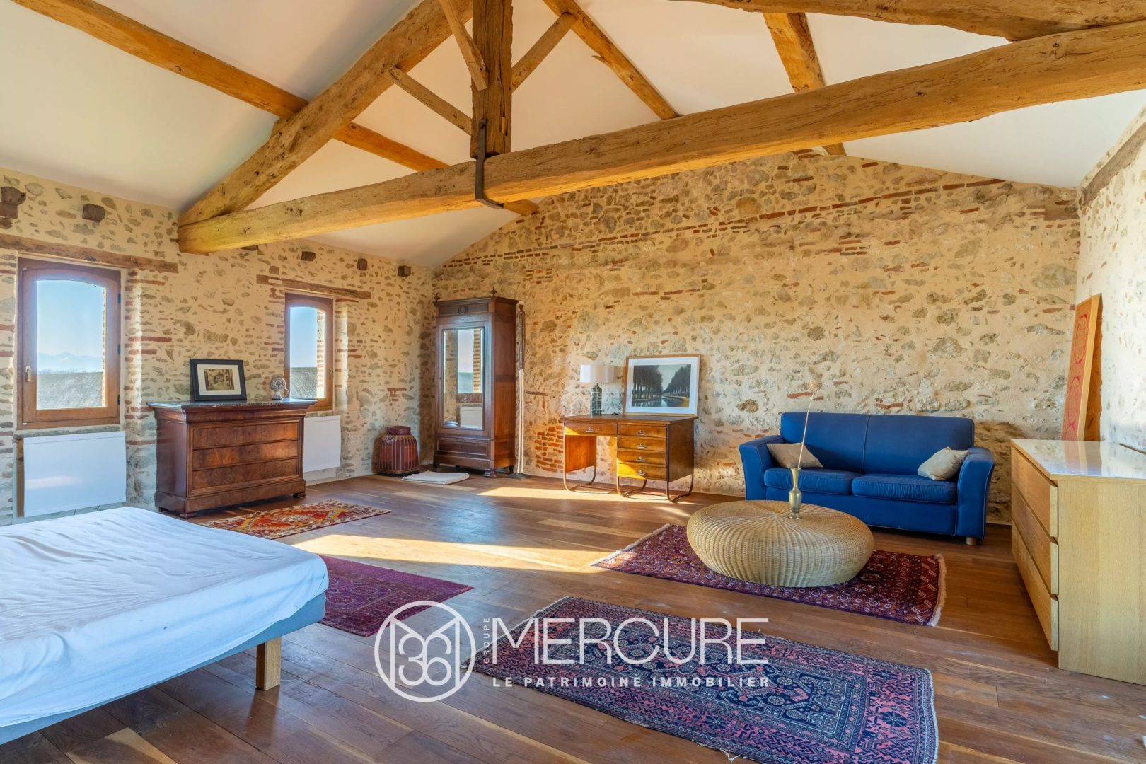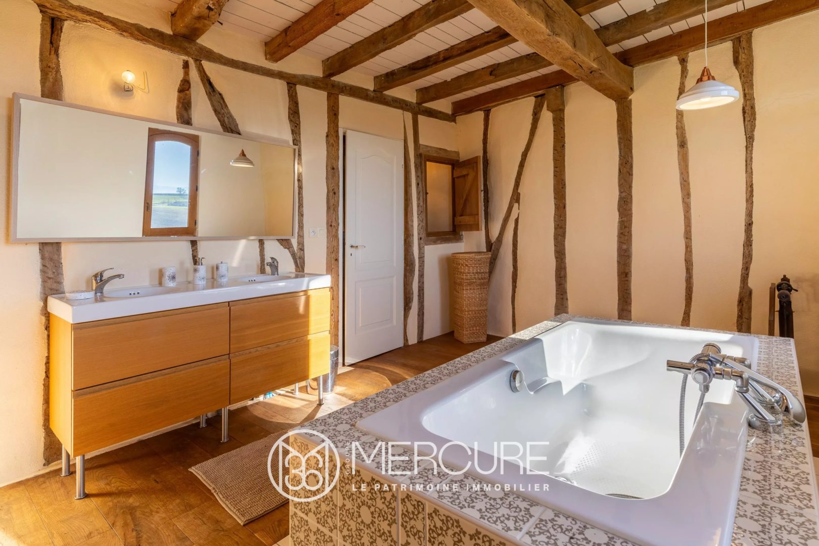 The property’s modern comforts (heat pump, underfloor heating on the garden level, wooden frames double glazing) mean it can be used all year round.