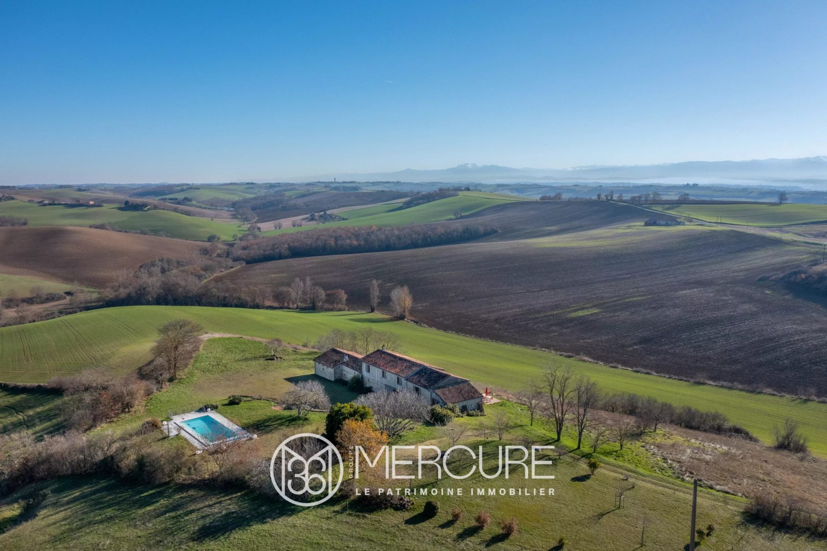 This former farmhouse is located in a commanding position, facing south and overlooking the Pyrenees.