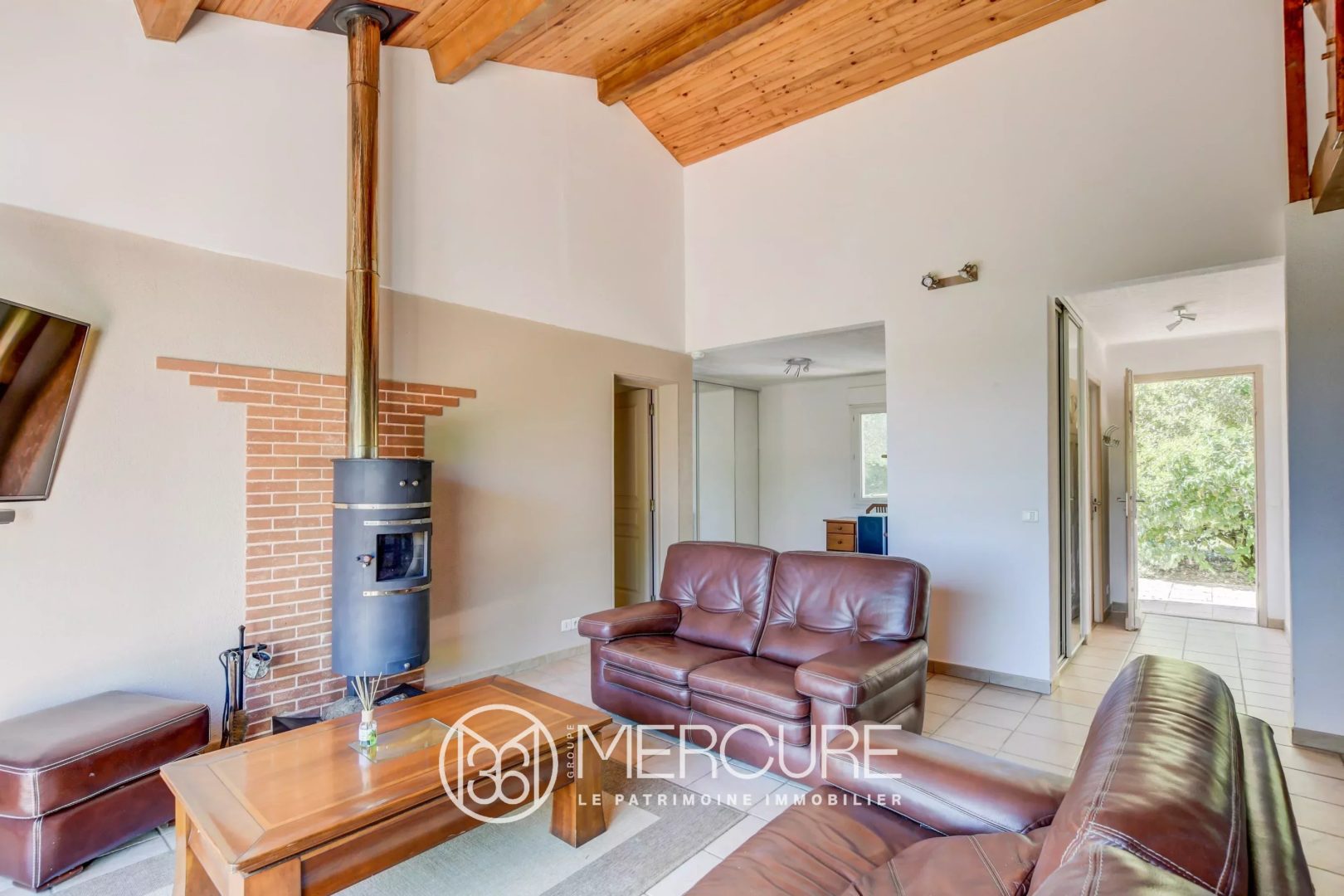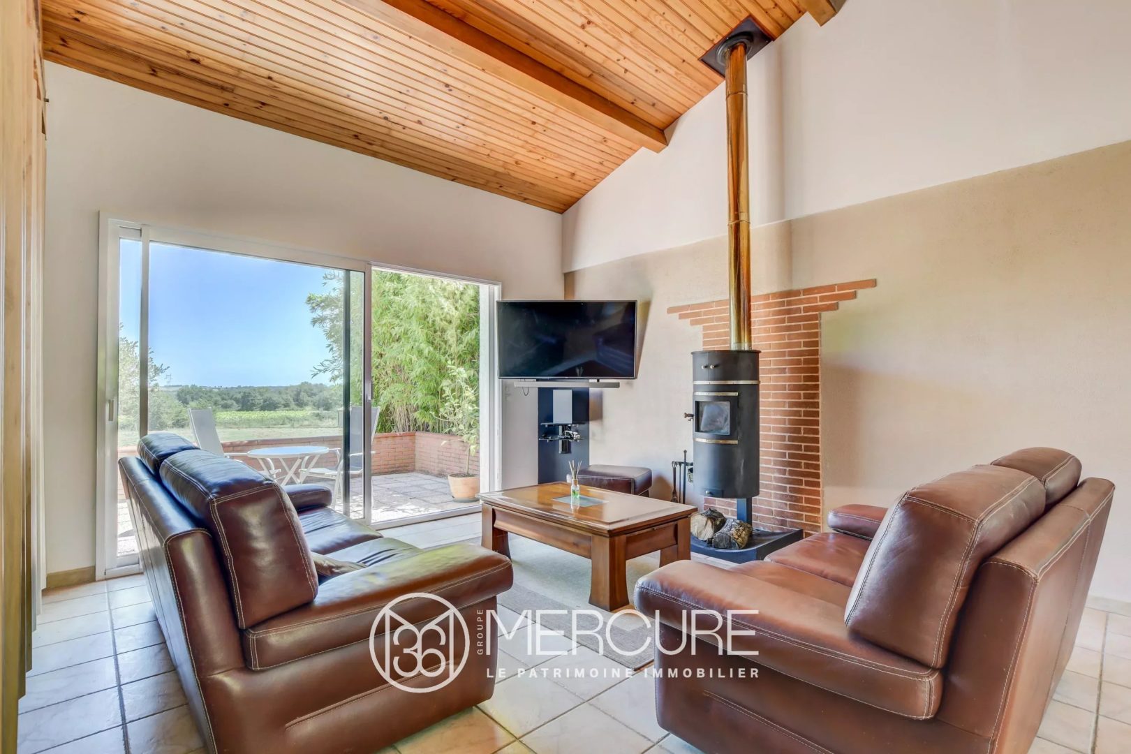 The large living room, equipped with a wood-burning stove, and an open plan kitchen with a bay window opening onto the terrace and the countryside, is perfect to relax and enjoy the lovely view. For optimum comfort, there are also a storeroom and a laundry room and an office. This vast living area leads to 3 bedrooms, 2 bathrooms and a separate toilet.
