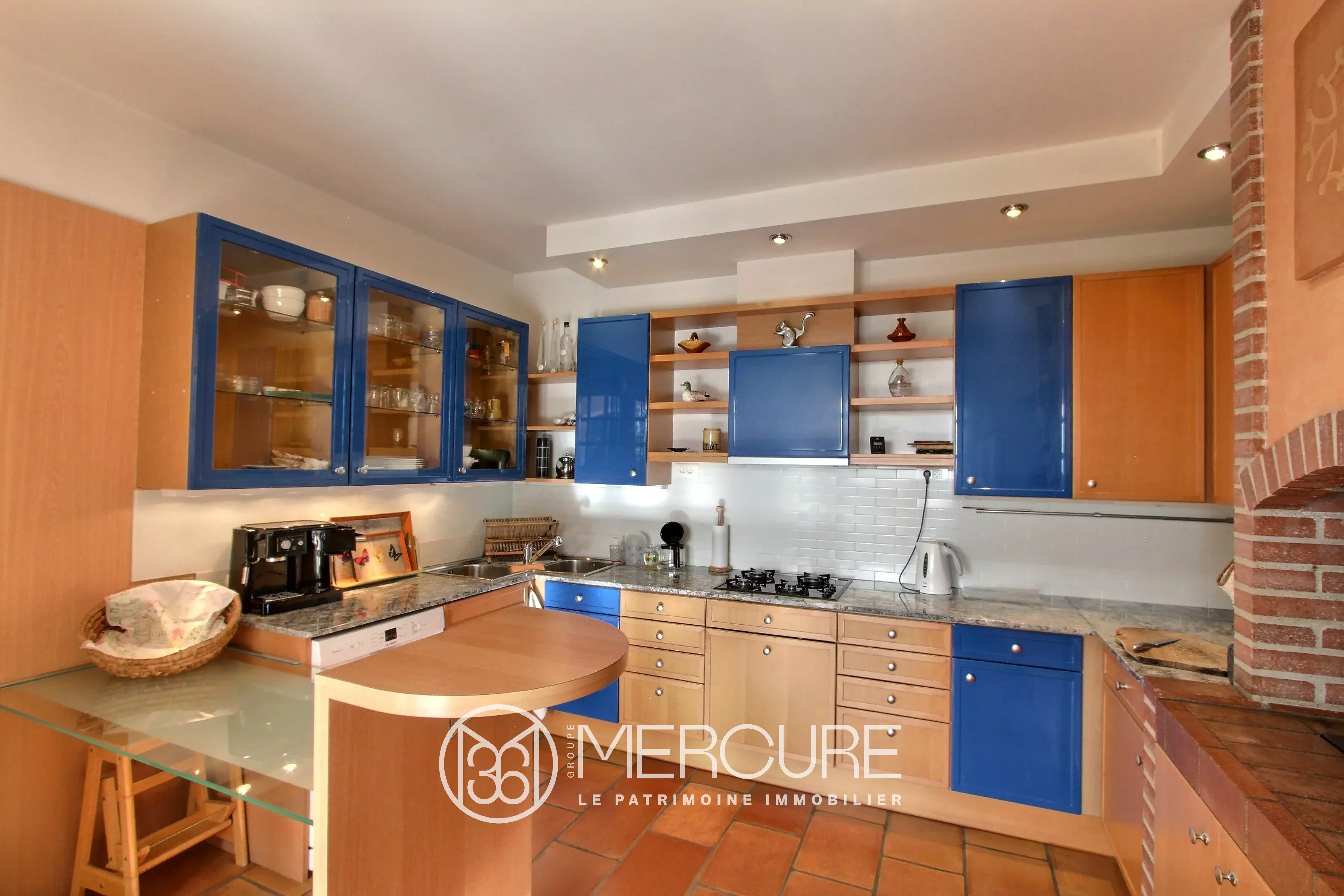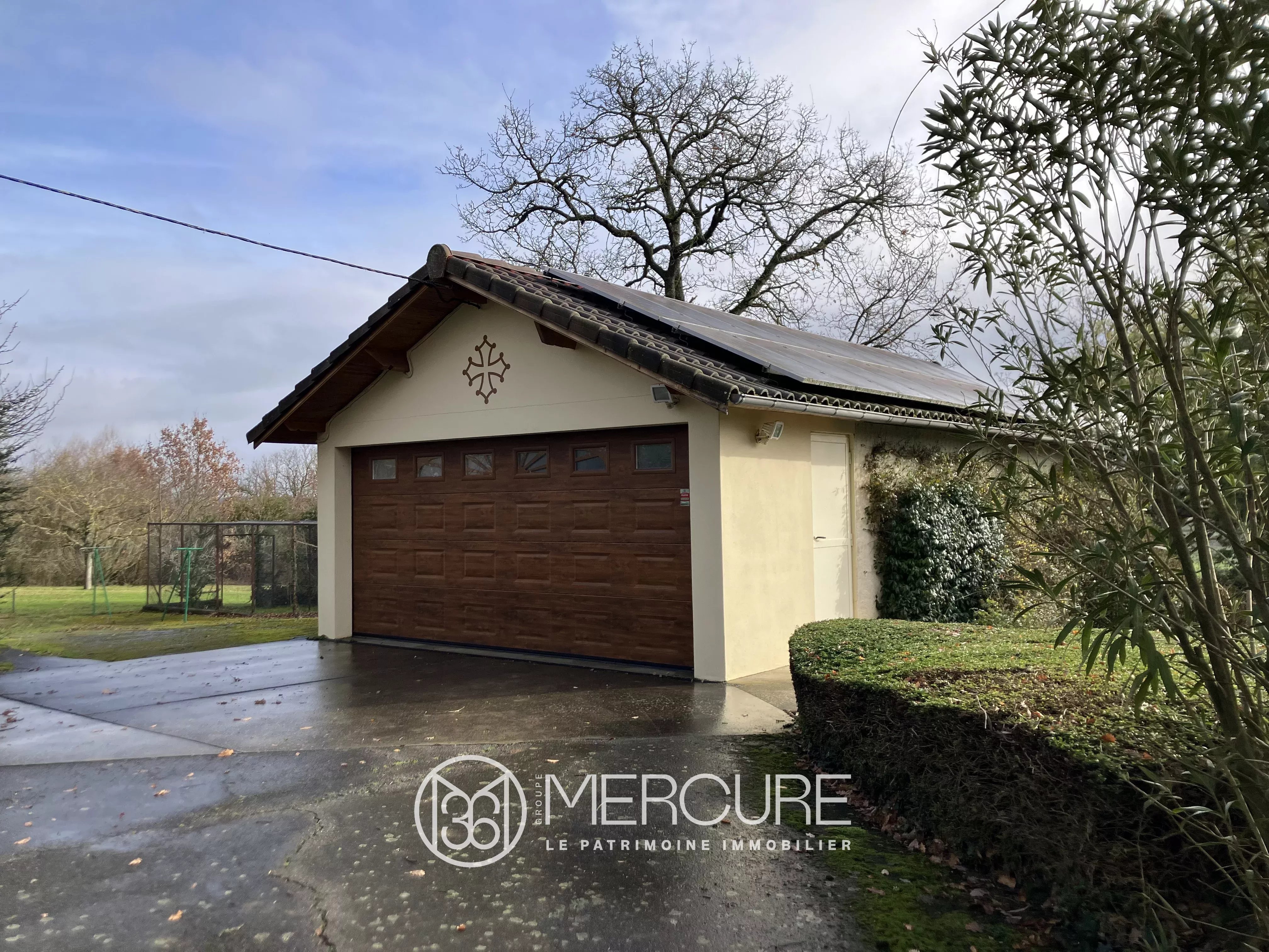 A 230m² basement and a detached garage with photovoltaic panels for electricity production complement the property.