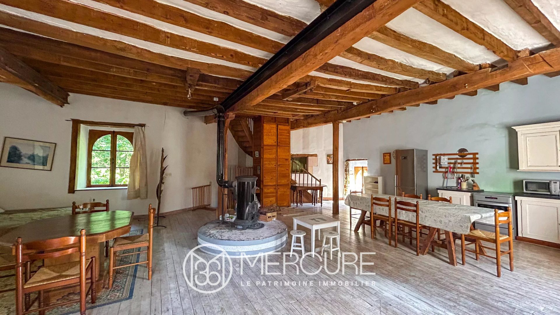 – on the ground floor: a kitchen with wood stove, a living room, a dining room,