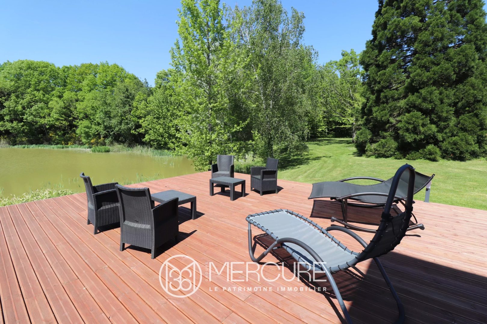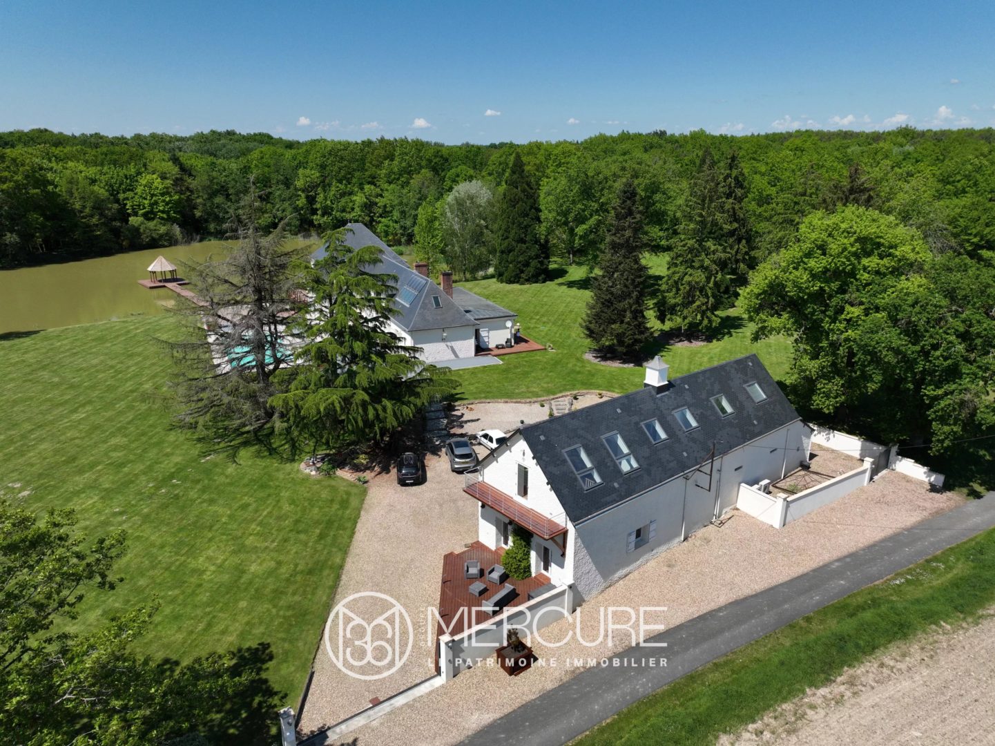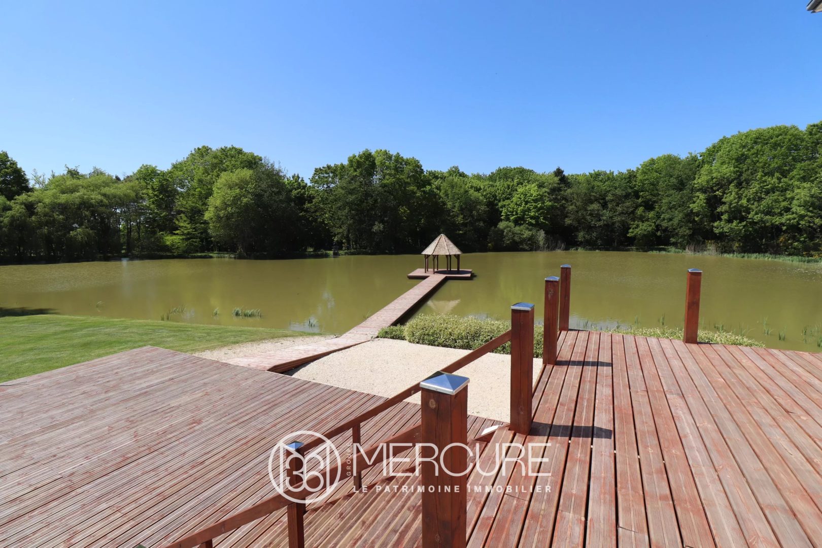 The main house has been completely renovated. The roofs and zinc work are in perfect condition. The decor is refined. The kitchen is a wonderful, welcoming space, superbly equipped. The boiler is new. The utility room has custom-made storage. Everything is connected to remote controls for the lighting and the electric gate. The bathrooms are modern and practical. The vast and numerous terraces have been designed to take advantage of the view of the pond, which is the centerpiece of this property. The charm of the pontoon leading to the central kiosk is a total success !