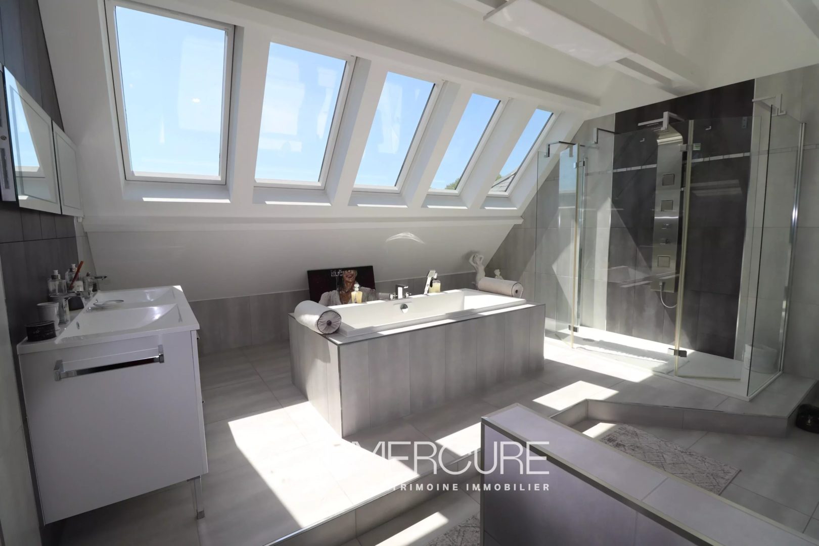 The main cottage has been completely renovated with numerous skylights providing incredible brightness. The insulation has been completely redone (as has the main house). The bathrooms have Bluetooth mirrors (a very original gadget !).
