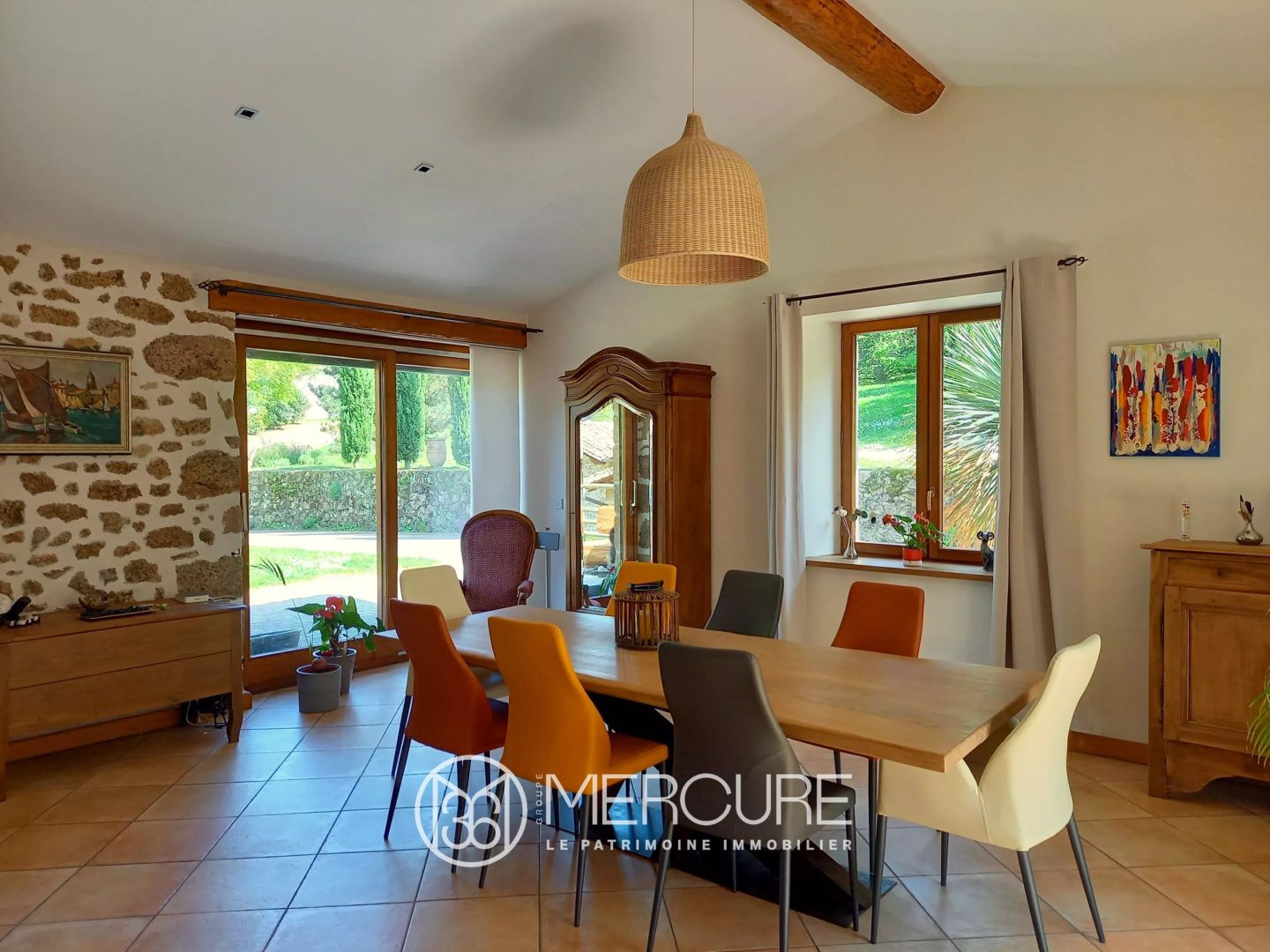 A large 62 m² living/dining room with fireplace and a lovely kitchen, both opening onto a large outdoor terrace. Another dining room with an open-plan kitchen makes it easy to accommodate guests while preserving a more private part of the house. A beautiful wine cellar.
