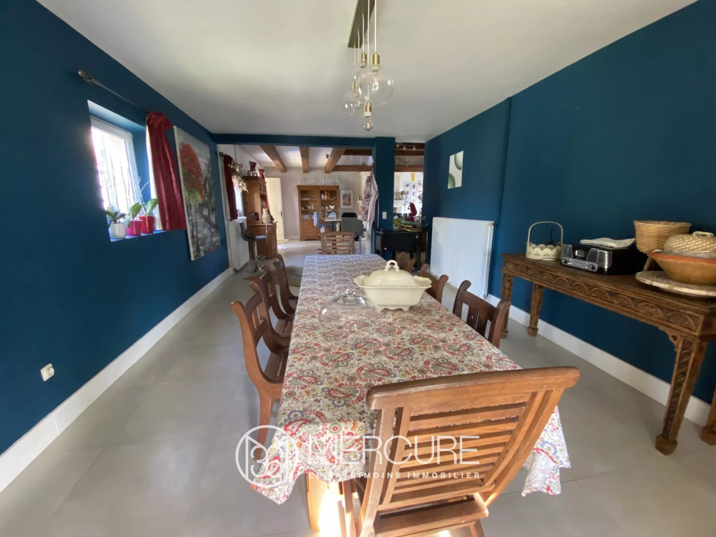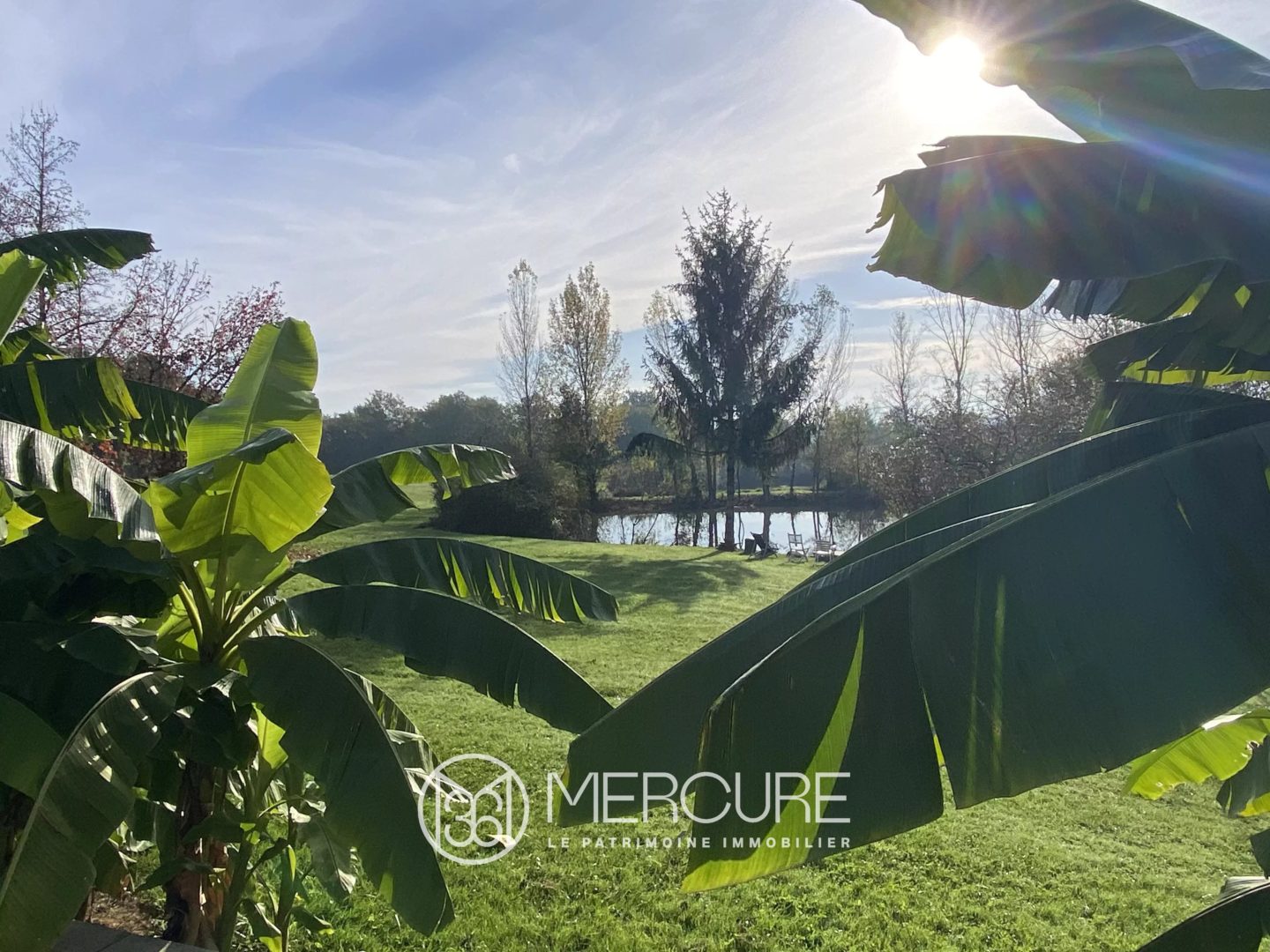 – Dining room (23.2 m²) with access to a covered terrace, overlooking the pond