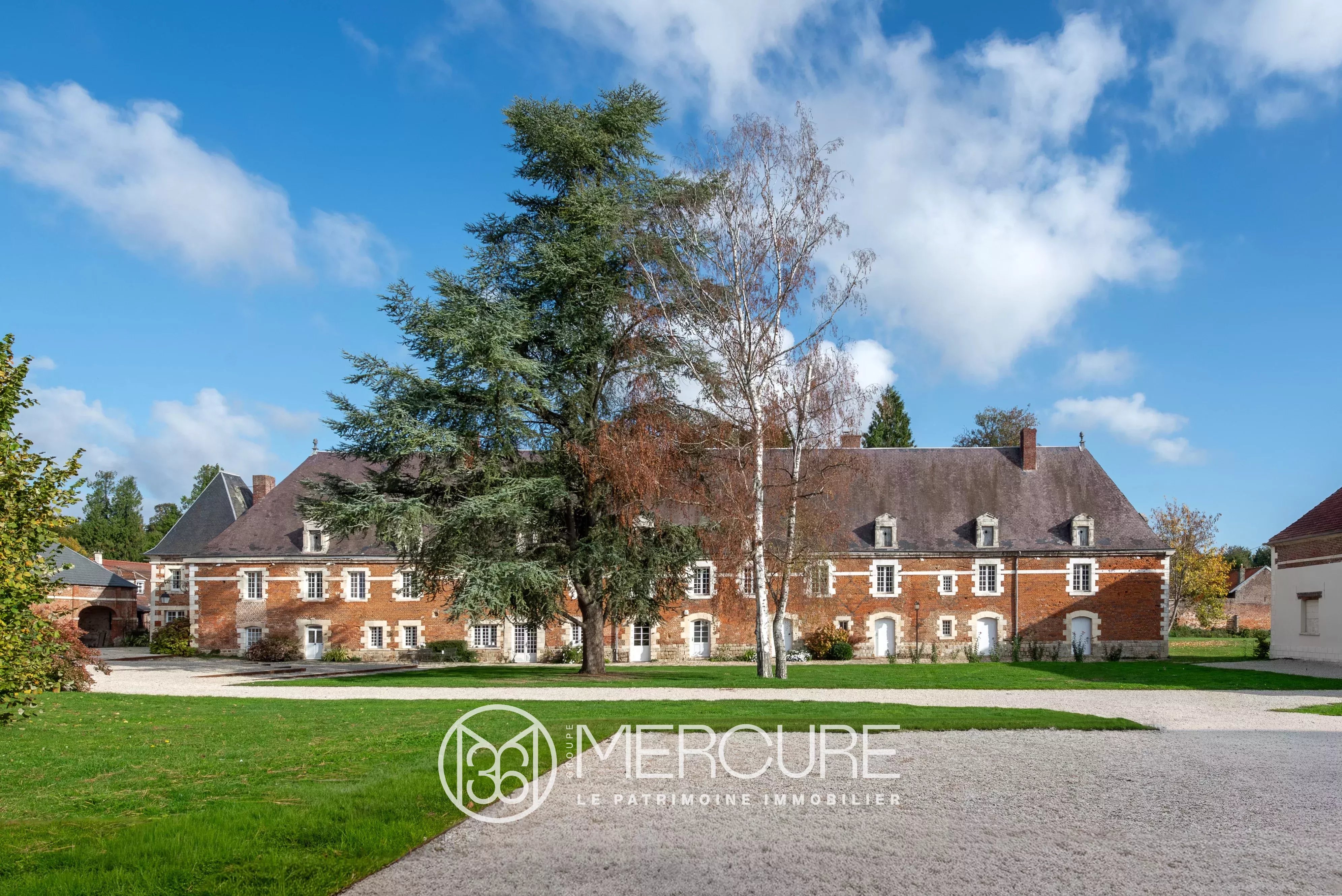 The large main building, constructed in 1638, features imposing architecture combining brick and stone, topped by a high roof embellished with Renaissance-style dormer windows.