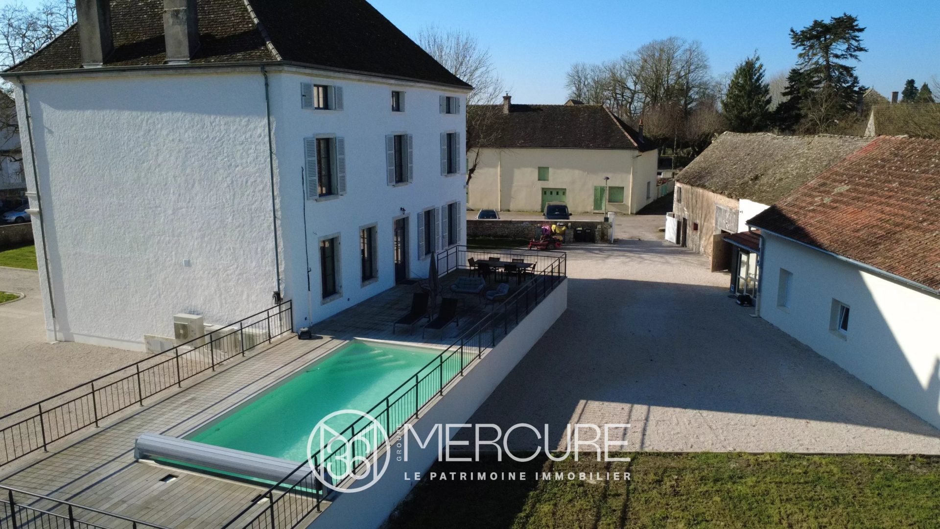 A few kilometres from the town of Chalon-sur-Saône and the vineyards of the Côte de Beaune, in the heart of a village with shops, a large mansion completely renovated between 2023 and October 2025, offering 362 sqm of living space on 3 levels, comprising a living room with air-conditioned wine cellar, a dining room, a fully equipped open-plan kitchen, 7 bedrooms, 3 bathrooms/shower rooms and 3 toilets. Exceptional A energy rating. Air-to-air heat pumps, reversible air conditioning on all 3 levels, thermodynamic water heater for hot water production. Large terrace (120 sqm) overlooking an 8 x 4 m heated swimming pool.
