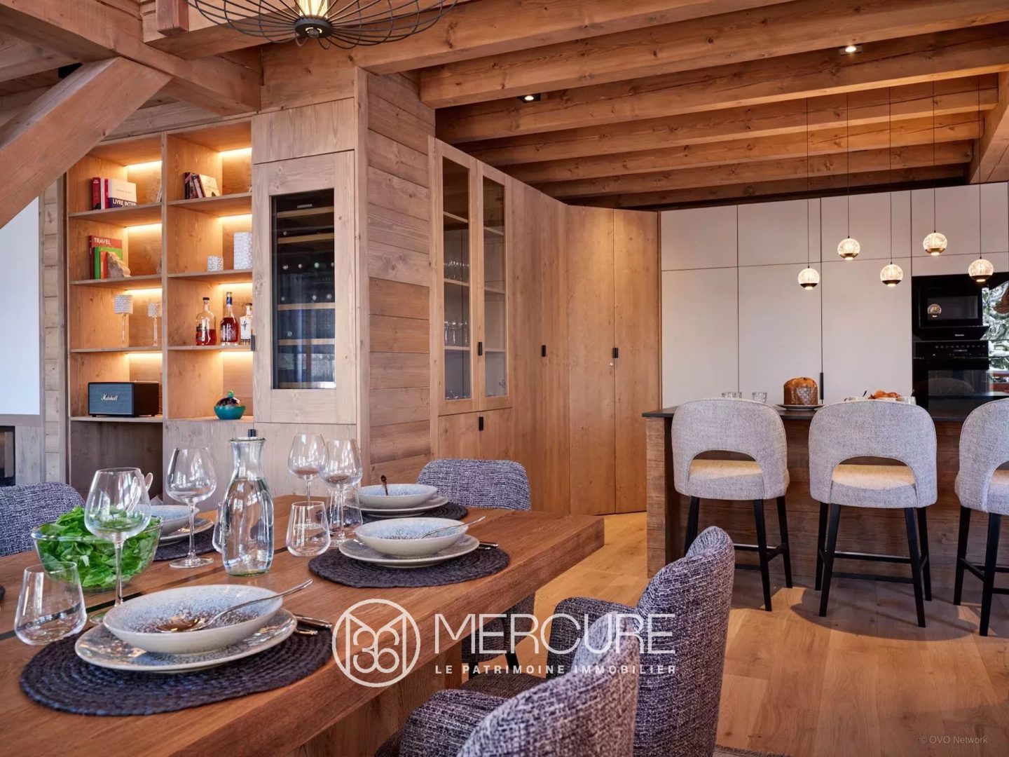 Just steps from the slopes, the property offers an unobstructed panorama of the Mont Charvin and the magnificent Aravis range.