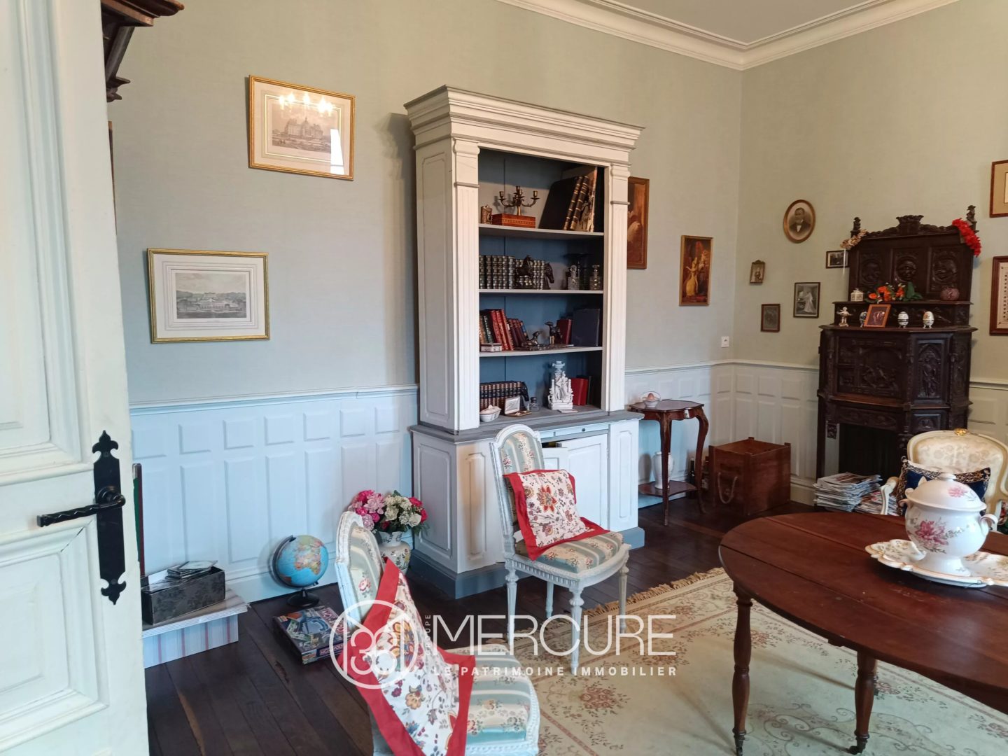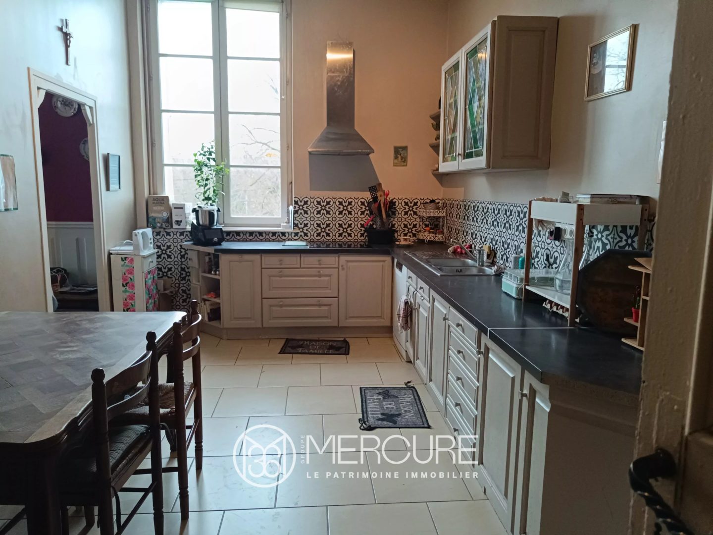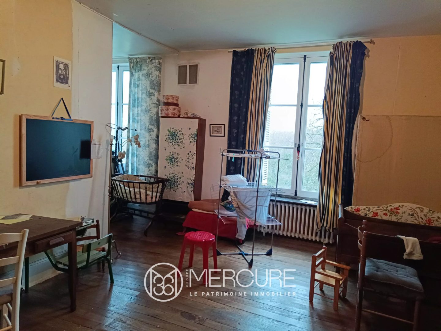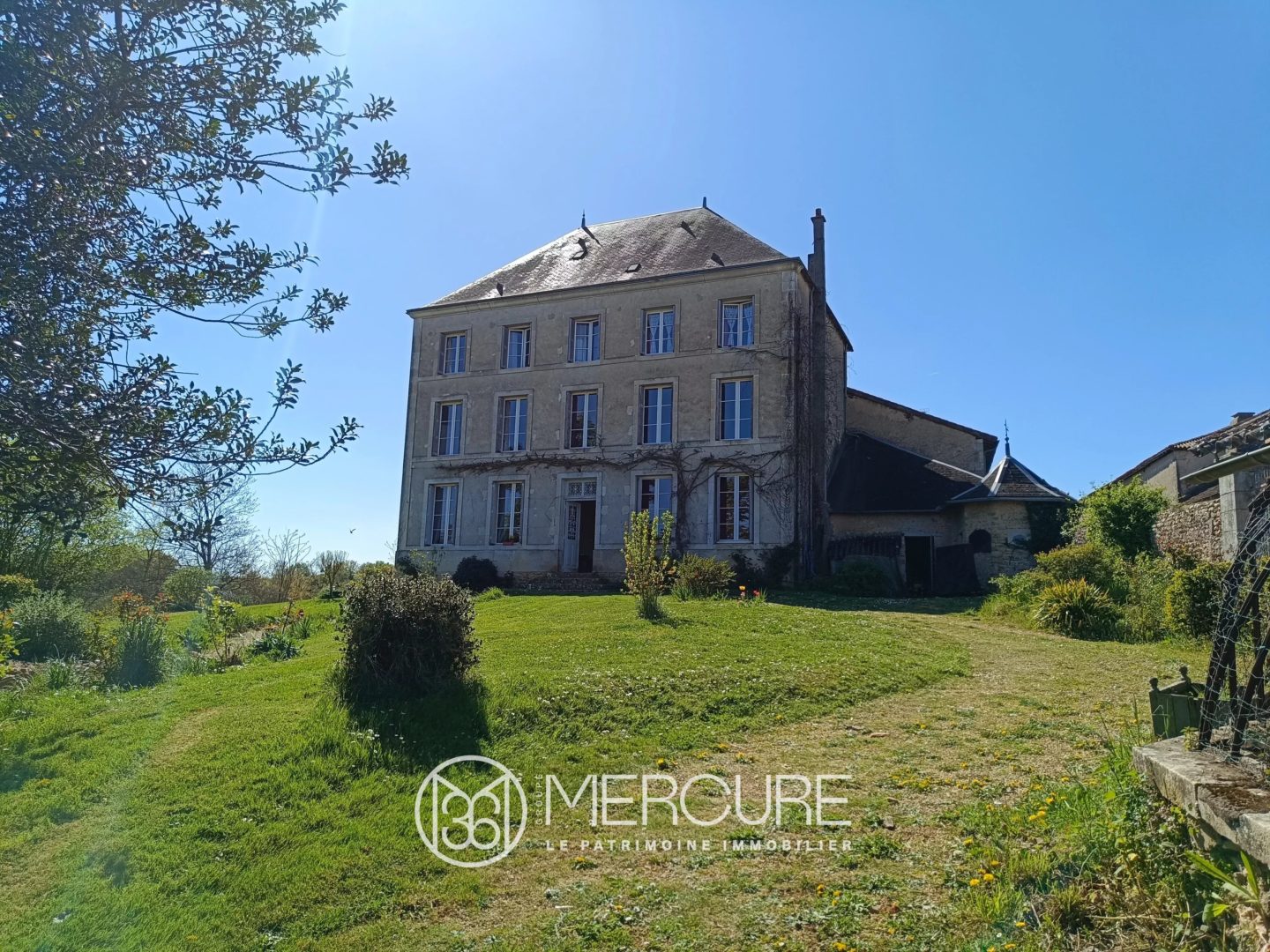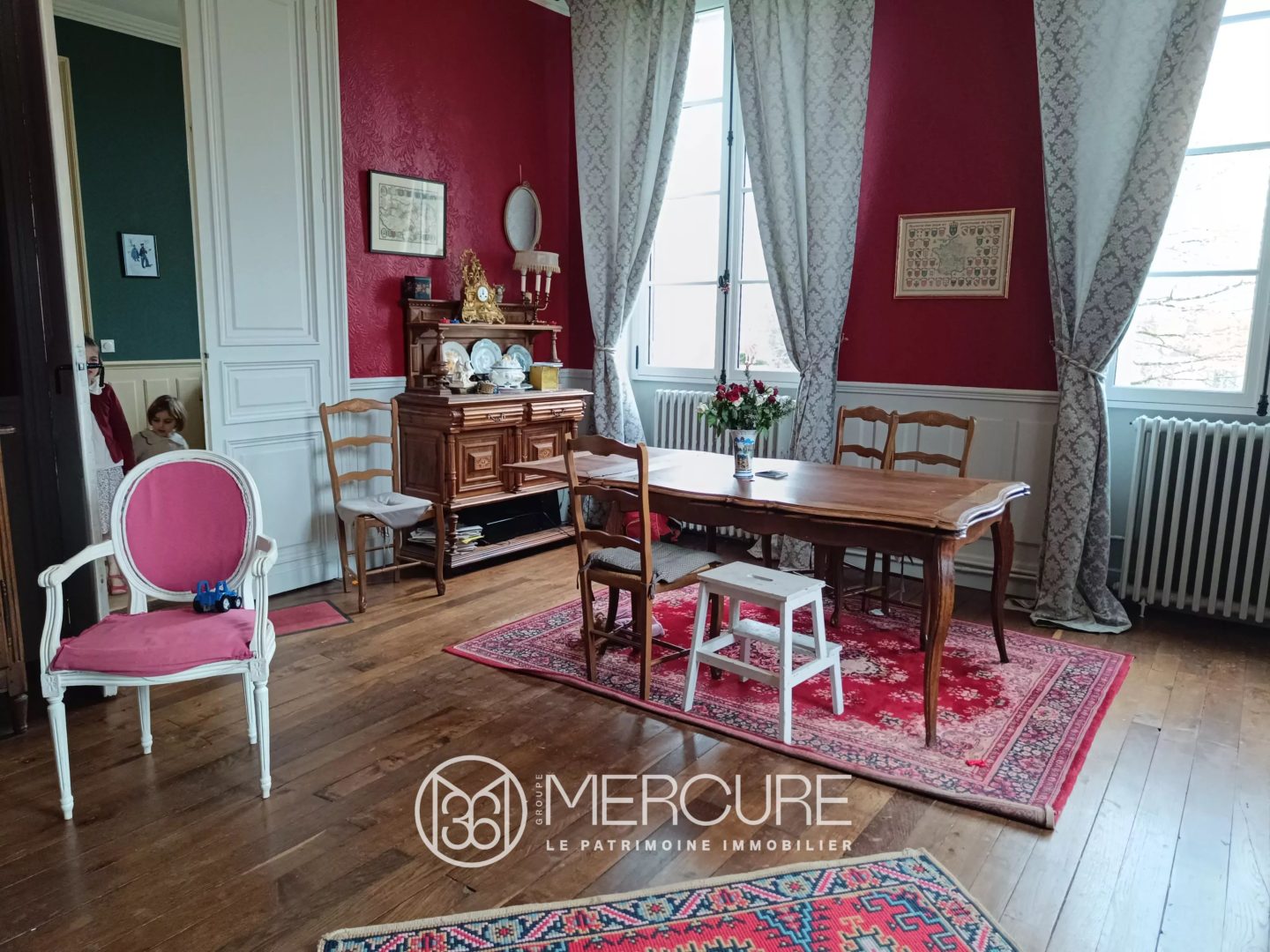 Between Civray and Gençay, you’ll find this magnificent renovated Maison de Maître comprising, on the first floor, a large entrance hall with an old staircase, a living room with a wood-burning stove, a dining room with another wood-burning stove and a kitchen.