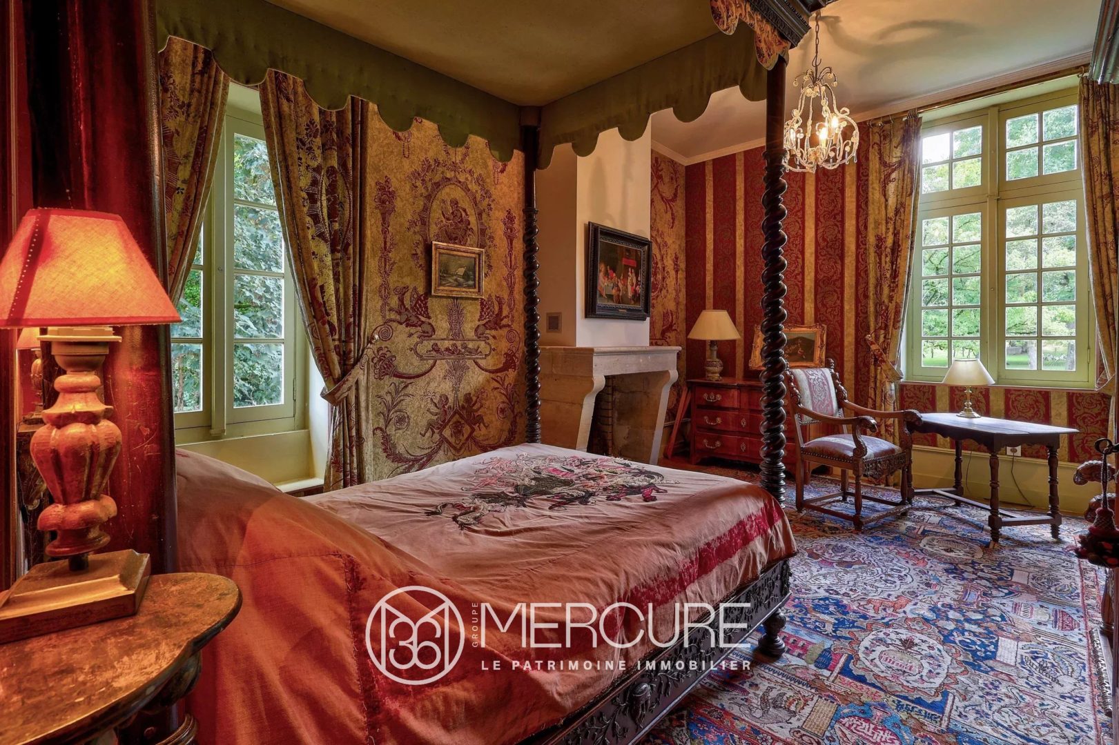 On the ground floor, the beautiful vaulted guard room welcomes you in front of its large fireplace; on the upper floors, the various lounges invite you to celebrate in its vast ballroom, to read in its cosy library, to relax in its flower-filled Indian-style lounge, and to play games in its billiards room.