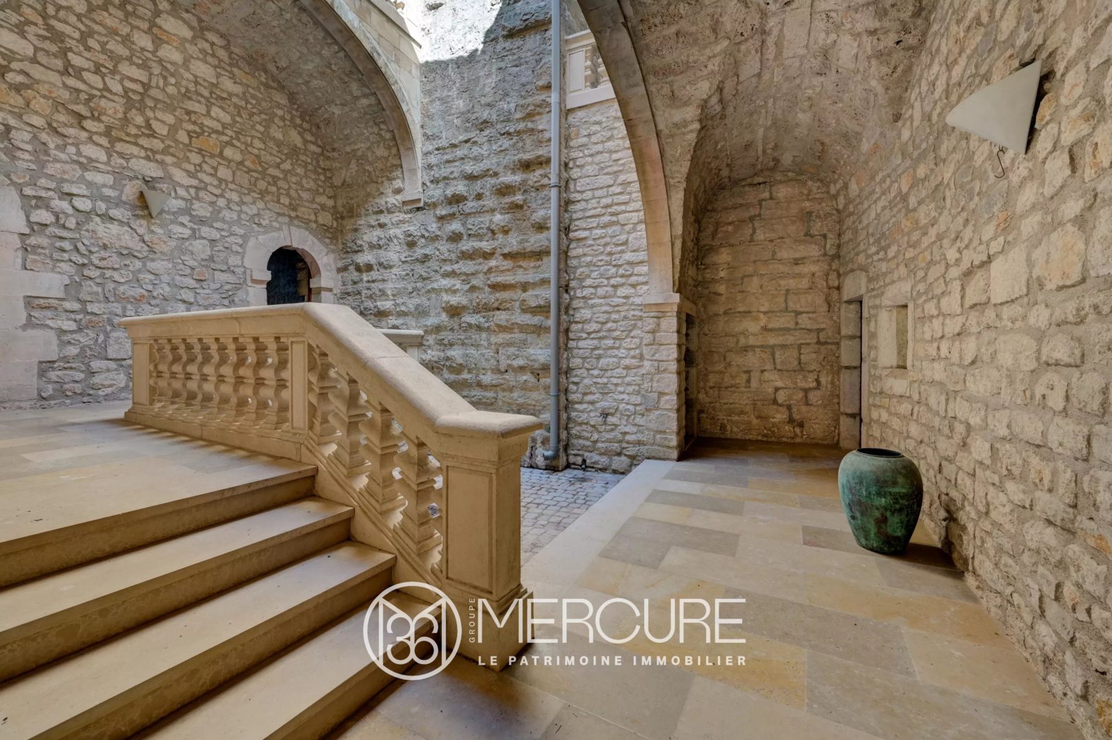 – Elegant stone baluster staircase leading from the “pluvarium” to two other large rooms, also to be converted into suites.