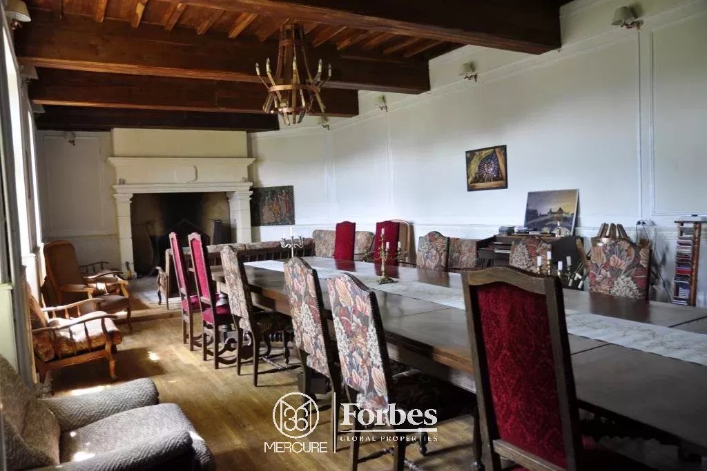 1 200 m² of living space including 300 m² renovated. 25 main rooms with a dining room of approximately 80 m², 17 bedrooms including 5 renovated ones with their own bathrooms. Beautiful original features, armored monumental fireplaces, old guard towers.