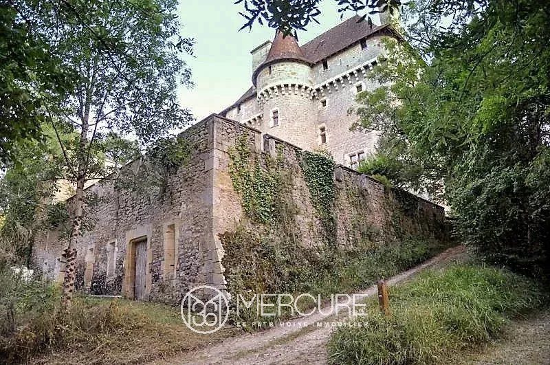 FOR SALE – IN THE HEART OF THE LOT – PRAYSSACNear the vineyards, exceptional castle built in the 12th and 15th centuries. ISMH listed.15 main rooms including 2 living rooms with monumental fireplaces, 9 bedrooms with 7 bathrooms on 5 levelsVery beautiful original elements. Old chapel. Tower with spiral staircase. Very beautiful roof frame. Elevator serving all floors.Large outbuildings, old stables, barns, dovecote. Workshop. Numerous rooms in the outbuildings.Caretaker’s house with 3 bedrooms and its private pool.Two swimming pools, one covered of 15m x 5.5m.Major restorations work between 1985 and 1990, such as electricity, plumbing and bathrooms, heating.