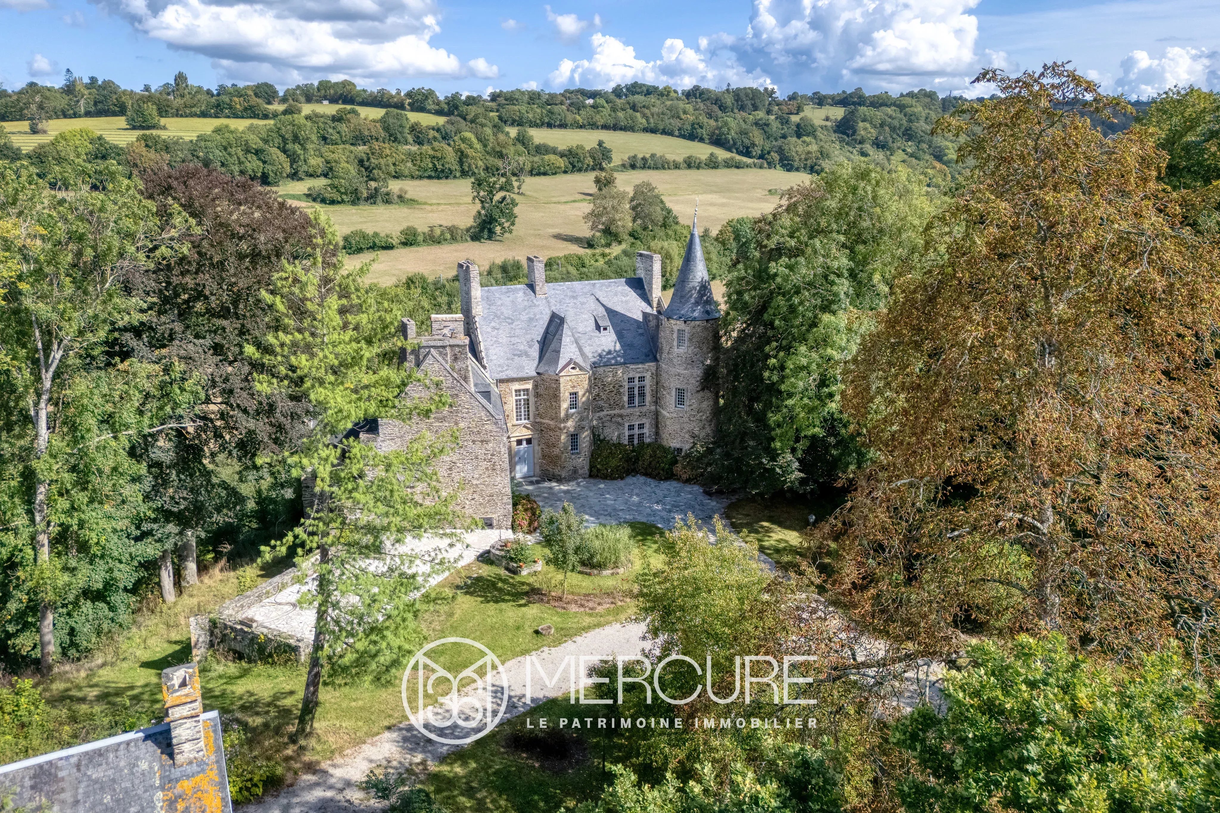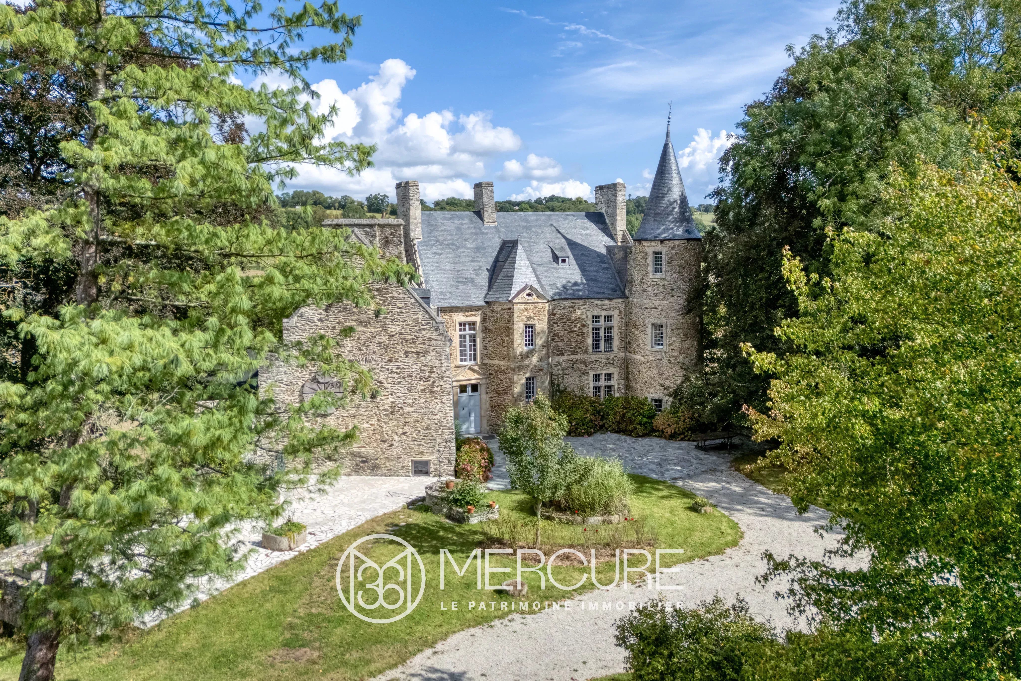 Wonderful chateau located on the outskirts of the town of Saint Lô, with a long paved driveway lined with chestnut trees and a wrought iron gate supported by two solid schist pillars. Nearby is a chapel and a 50 sqm outbuilding that serves as a garage and leads to a 100 sqm square tower. The 500 sqm chateau overlooks the Vire River. 1.5 ha park.