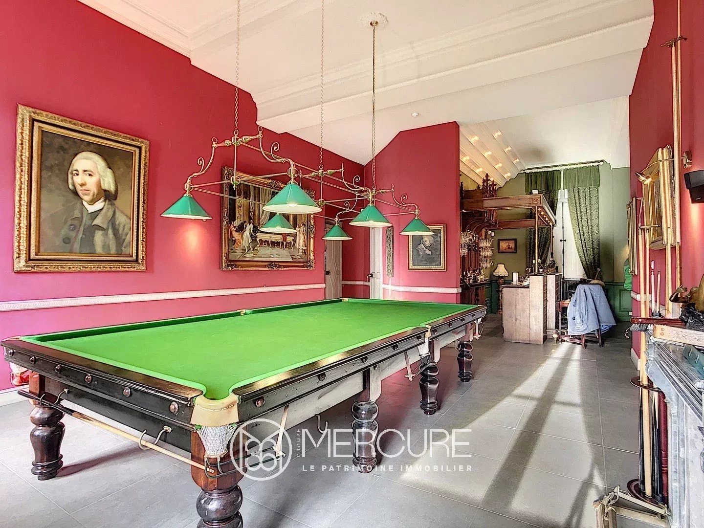 The ground floor is dedicated to welcoming guests and entertaining, with its entrance hall, large dining room, veranda-living room, library, piano room, billiard room, and club-style lounge bar. The kitchens, the breakfast room or everyday dining room, the pantry, the wine cellar, and the technical rooms are located in the basement.