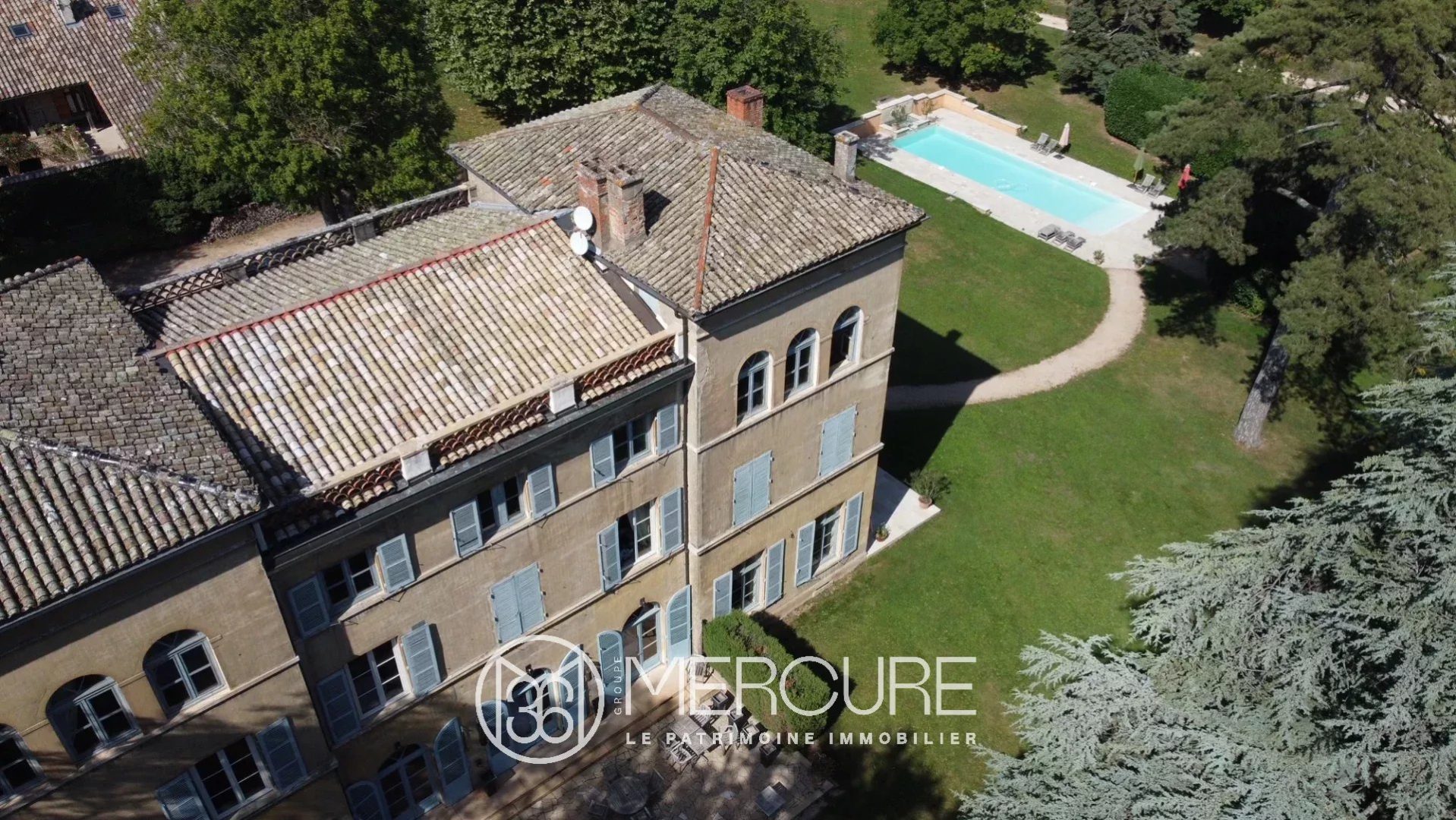 Beautiful park of about 2.8 hectares with trees and walls, swimming pool.