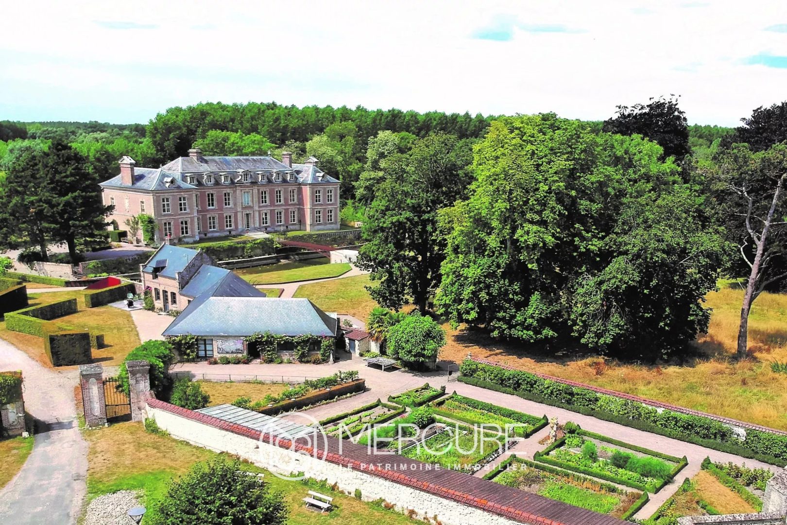 Park of 6.7 acres: garden, terraces and moats around the castle, large meadow in perspective.