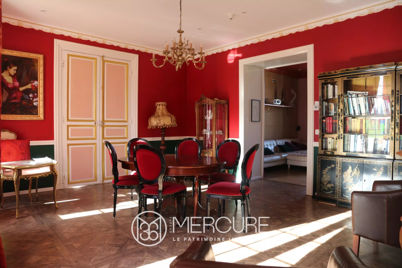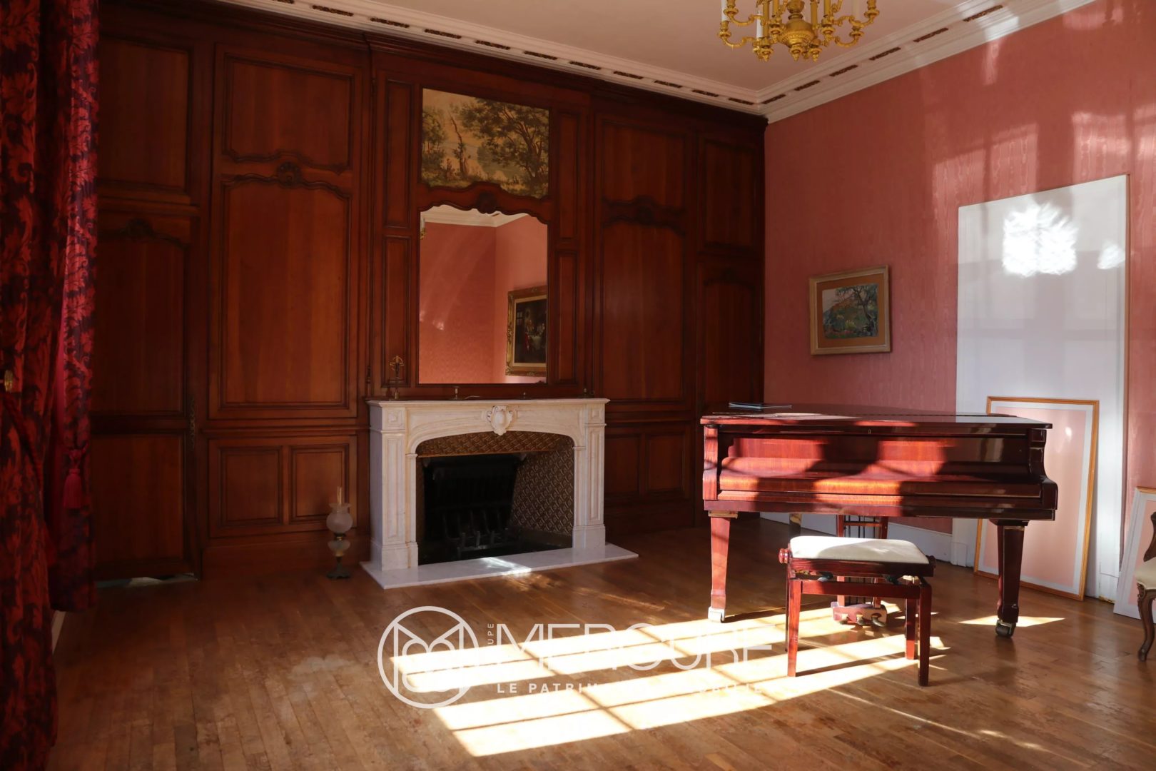 On ground floor : entrance hall with two access and passageway with stone floor (32.82 sq. mt), large living room with oak parquet floor (27.54 sq. mt) with fireplace and wood panels opening on the turret with carpet floor (2.46 sq. mt), dining room with parquet floor with fireplace (25.21 sq. mt) opening on the turret (2.46 sq. mt), TV room with parquet floor (17.92 sq. mt), fitted and equipped kitchen with dining space (access to laundry) (27.45 sq. mt), study (15.38 sq. mt) with carpet floor and fireplace, store room with tiled floor (2.08 sq. mt), water-closet with hand washbasin (2.25 sq. mt).