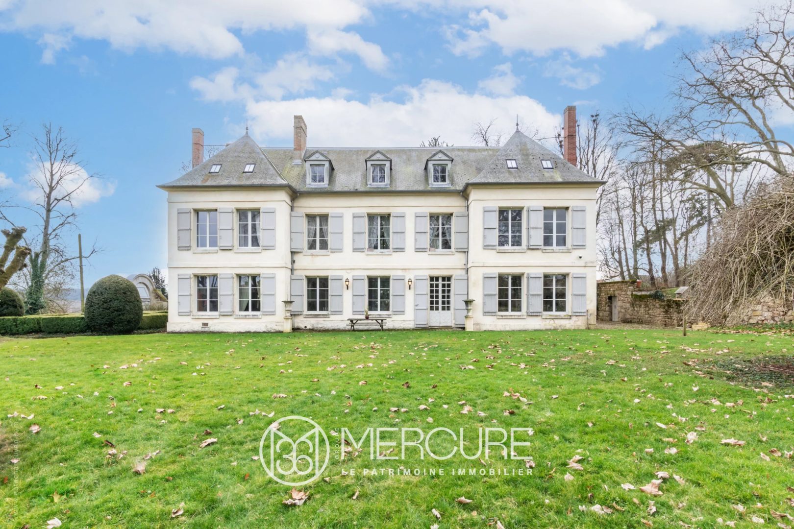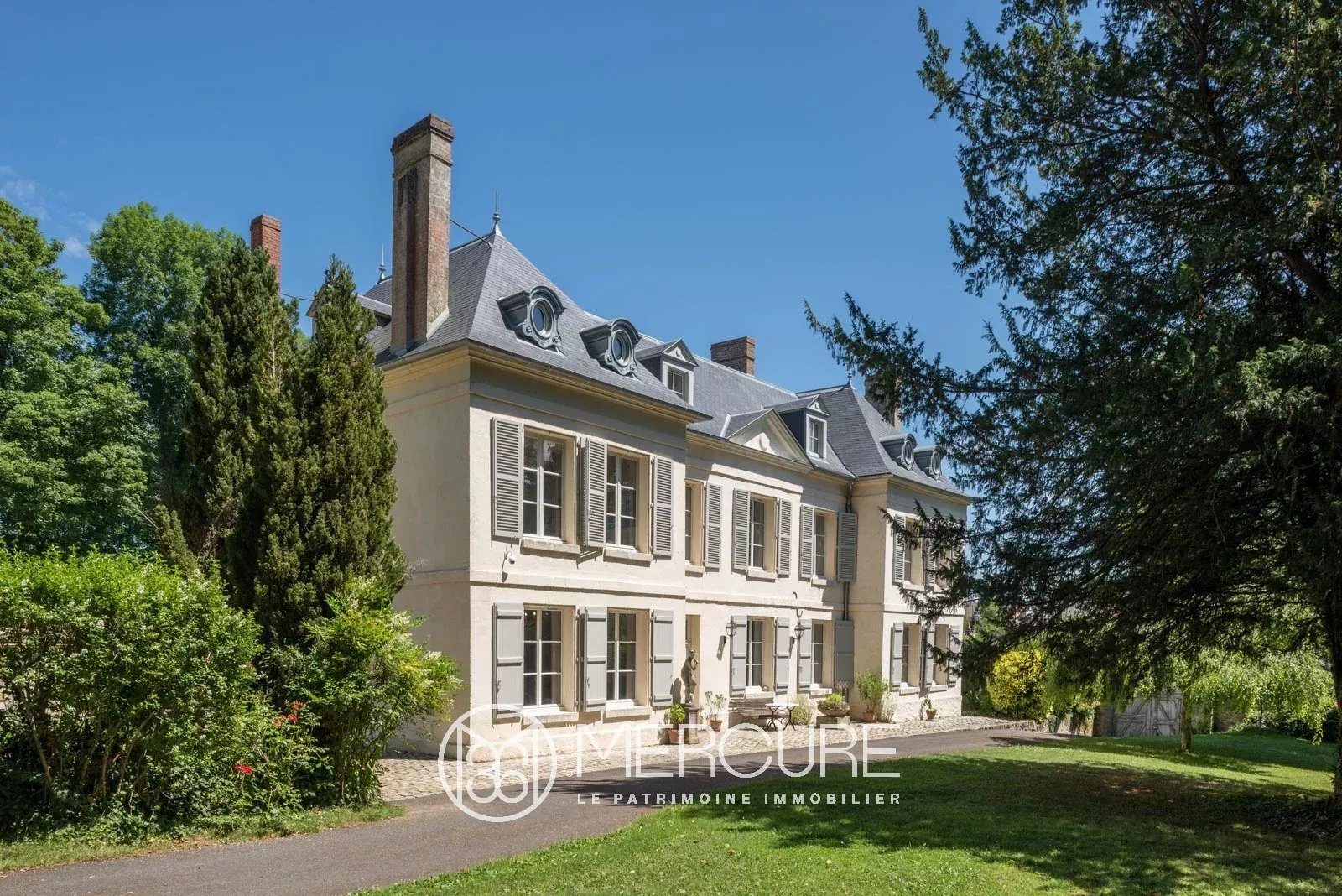 Rez-de-Chaussée: entrée vers un grand escalier, salle à manger à boiseries de style Louis XVI, belle cuisine de campagne aménagée, grand salon à boiseries de style Louis XV avec cheminée Régence, chambre de plain-pied et salle d’eau avec toilette, dégagement, lingerie, toilette séparé.