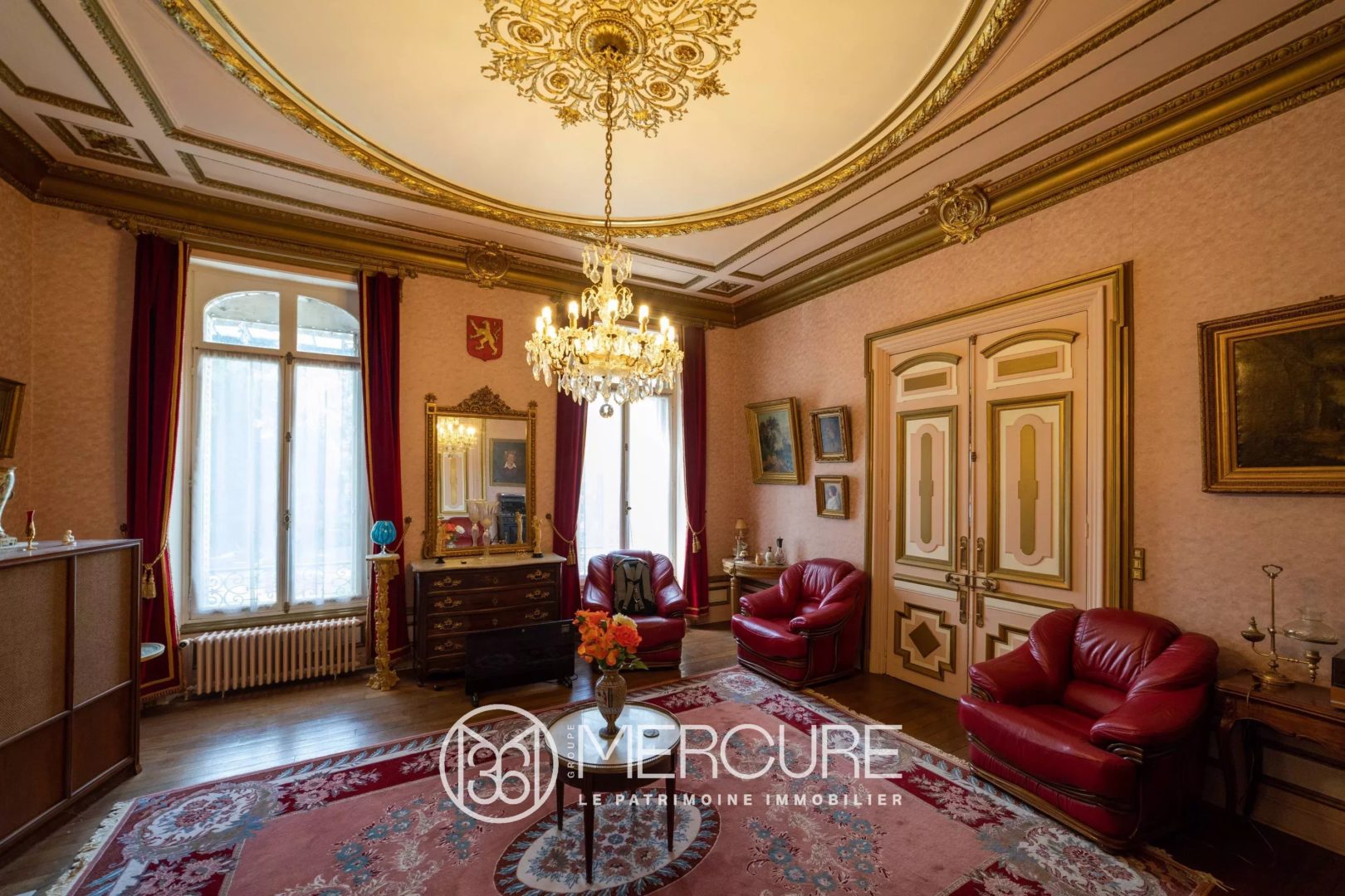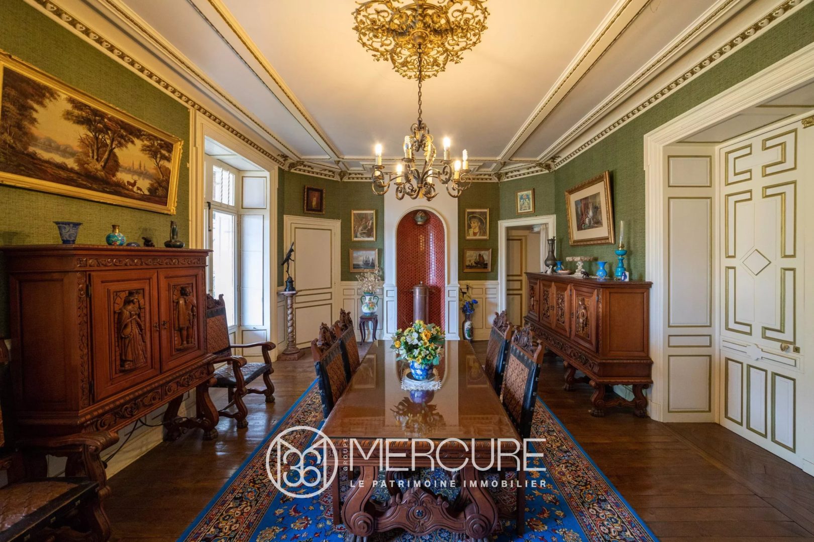 Elle est protégée par de hauts murs encerclant son beau parc arboré de 12 960m² et a conservé ses beaux éléments de décoration.