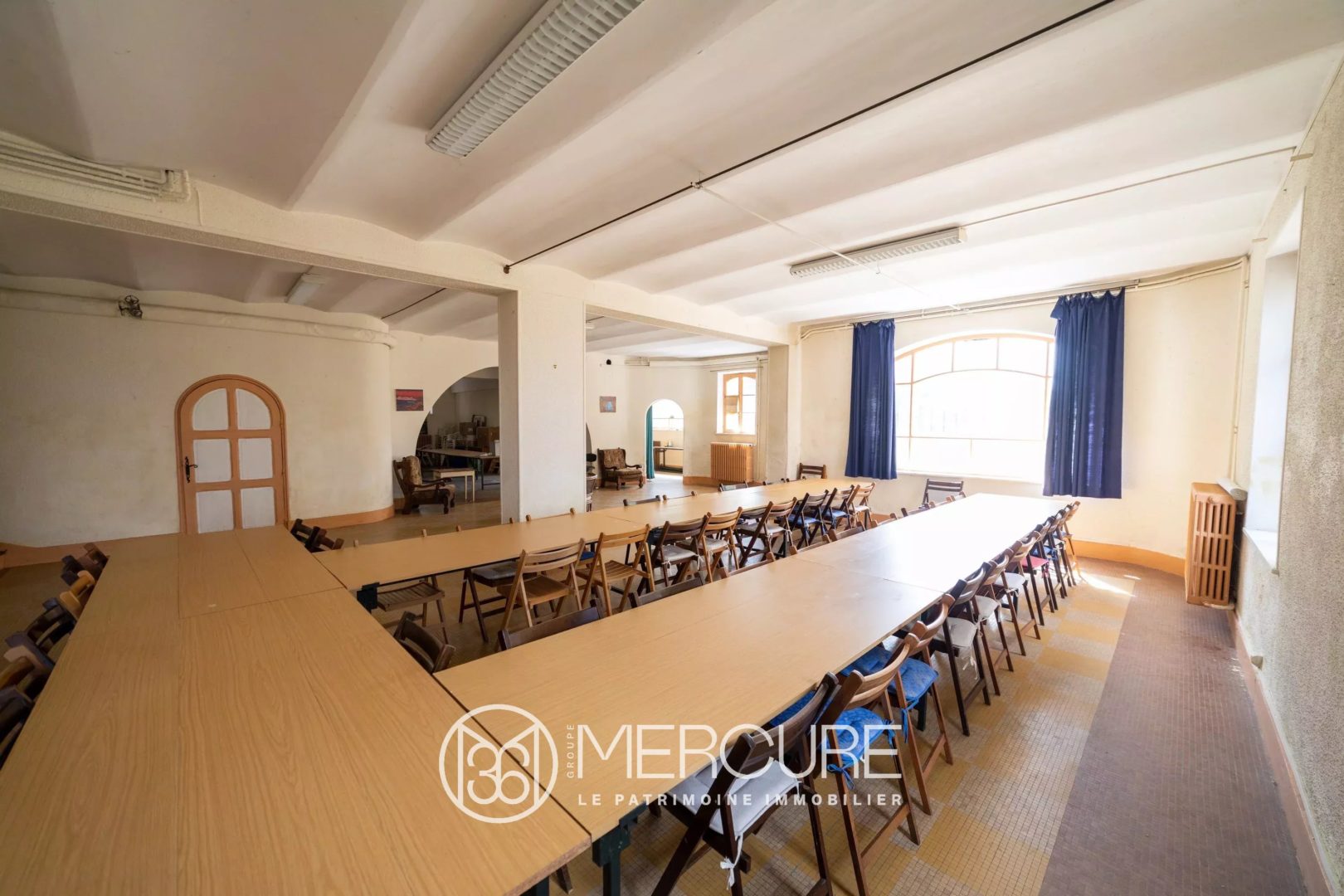 En rez-de-jardin : grande réception de 165m² avec espace cuisine, cave à vins, buanderie, celliers, chaufferie.
