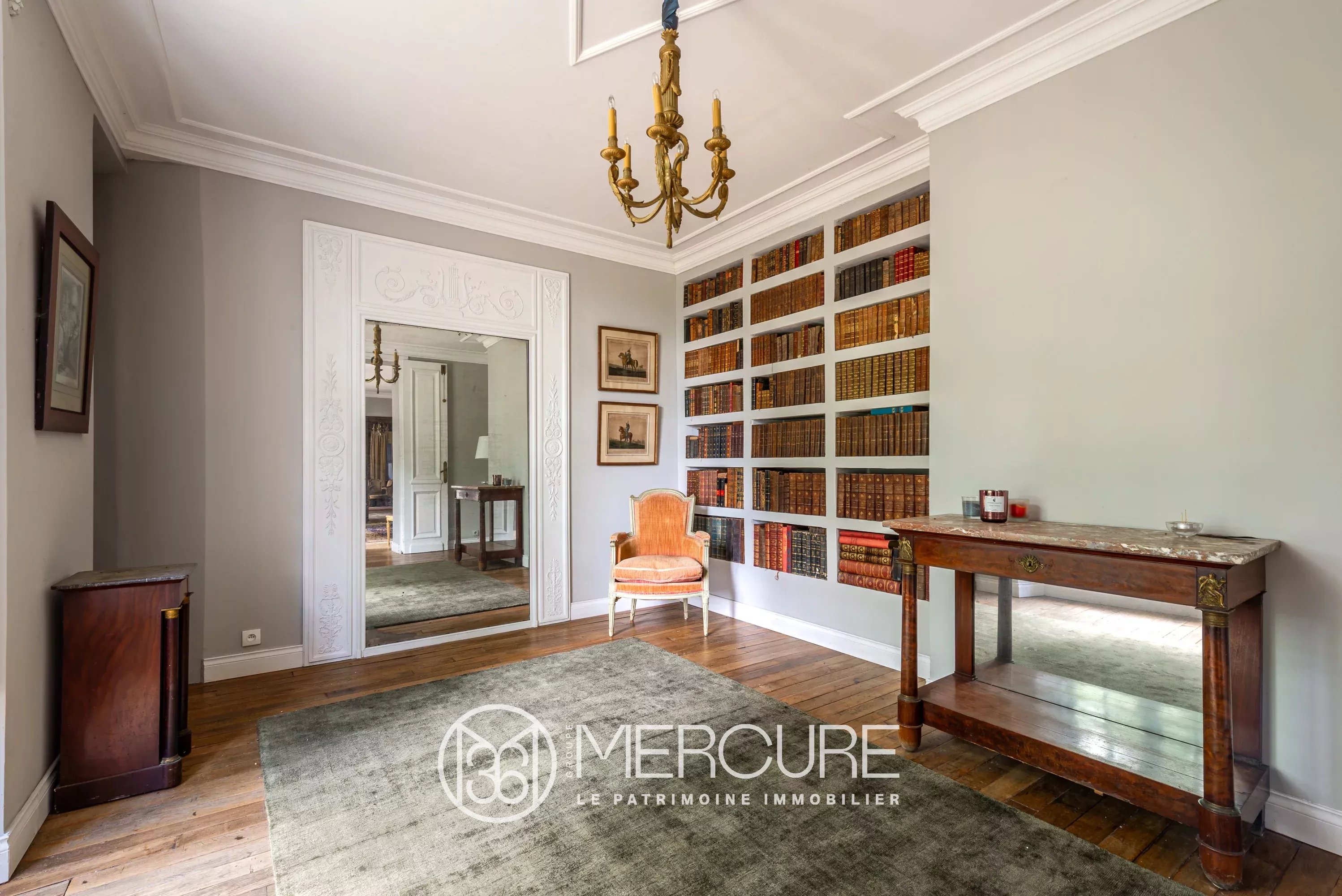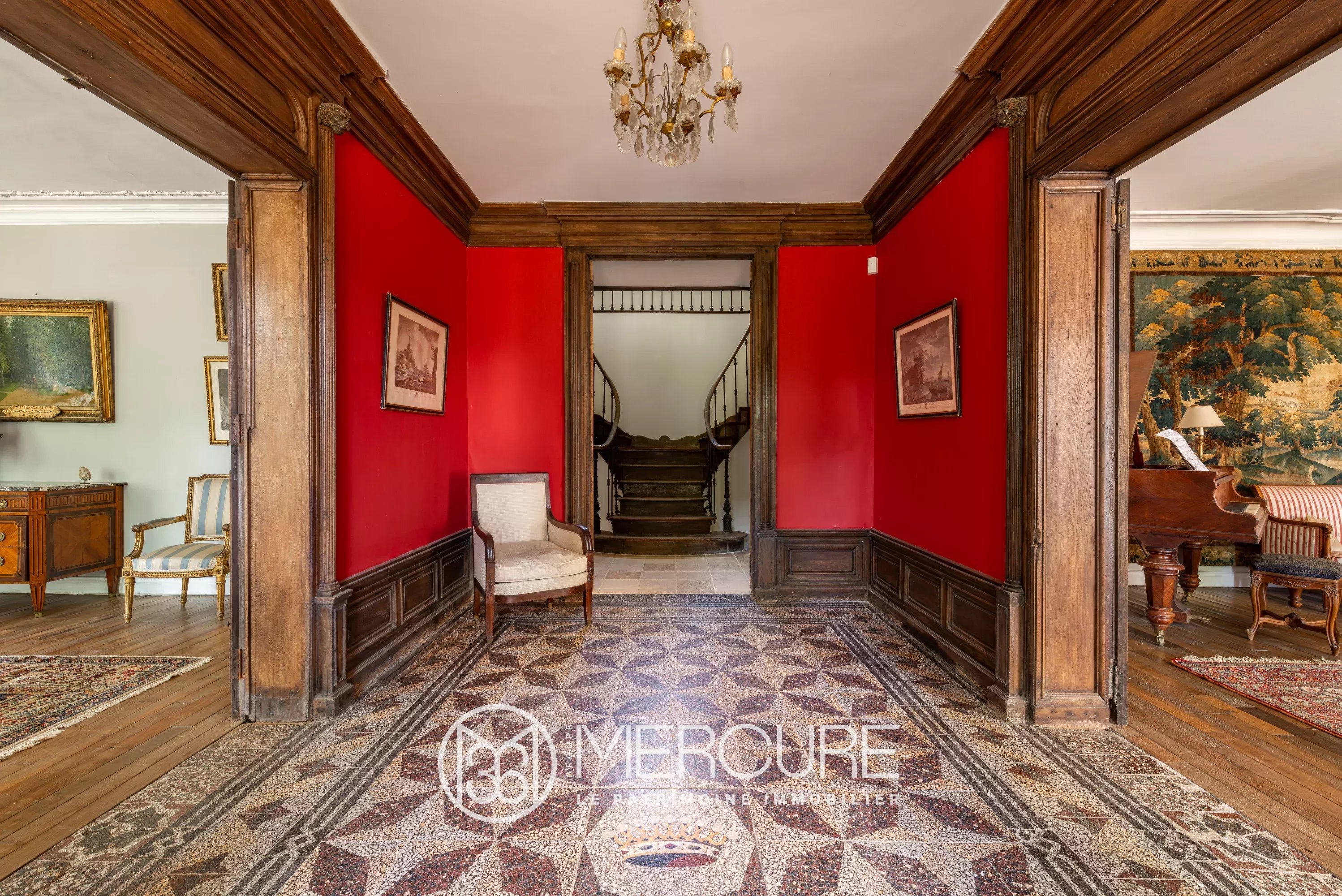 Rez-de-chaussée : entrée centrale et entrée latérale, petit et grand salons avec cheminée, salle à manger avec cheminée, deux grandes cuisines, bibliothèque.