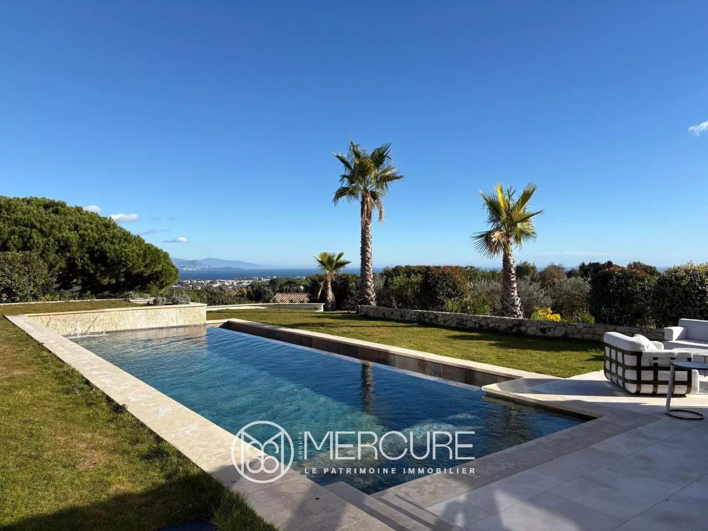 Located atop the residential hill of Super Cannes, easily accessible yet secure within a small gated community, this magnificent, recently built architect-designed property of approximately 400 sq m boasts luxurious amenities and a level of quality and finish worthy of a jewel of the French Riviera. Dominating the entire hillside, it offers breathtaking panoramic views of the sea and snow-capped mountains from every room, terrace, and expanse of its splendid Mediterranean garden surrounding the pool house, infinity pool, and jacuzzi.