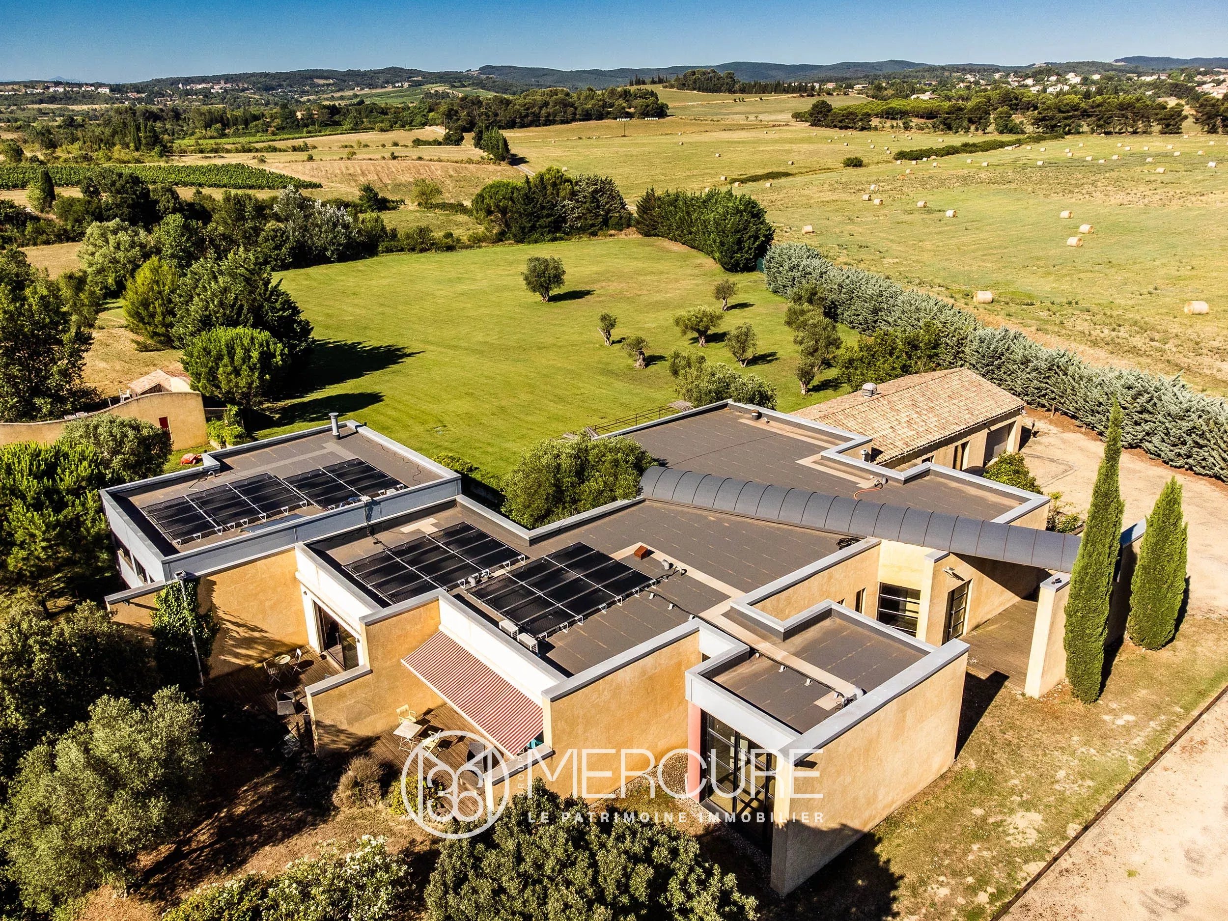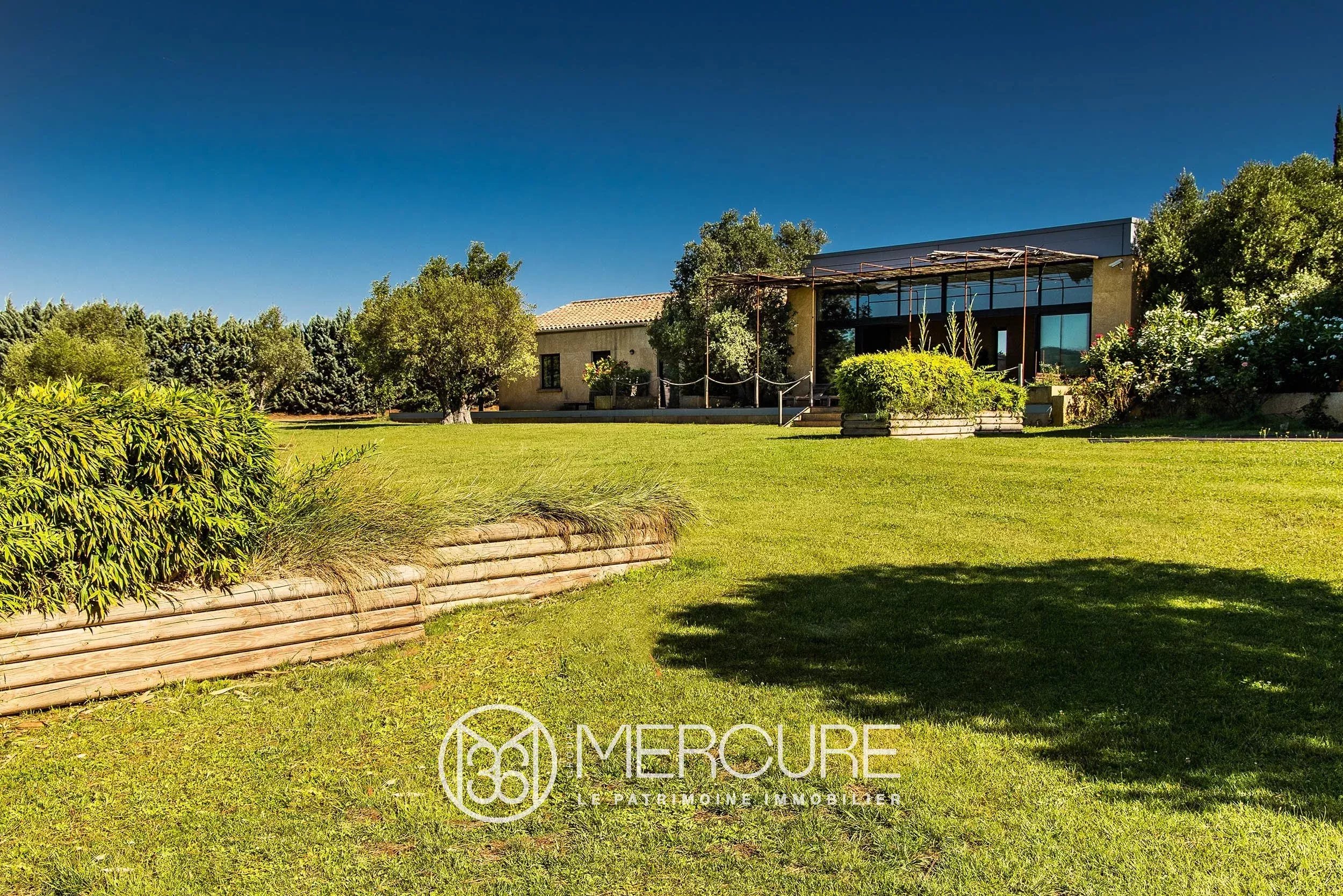 Luminous architect’s villa built with large blocks of rough limestone from the Gard region which provide excellent insulation and a warm colour. 600 m² of living space over two hectares of landscaped garden with lovely views. On the outskirts of a village and a lake, with a swimming pool and solar panels. 5 minutes from a large touristic town with an airport and a train station nearby.