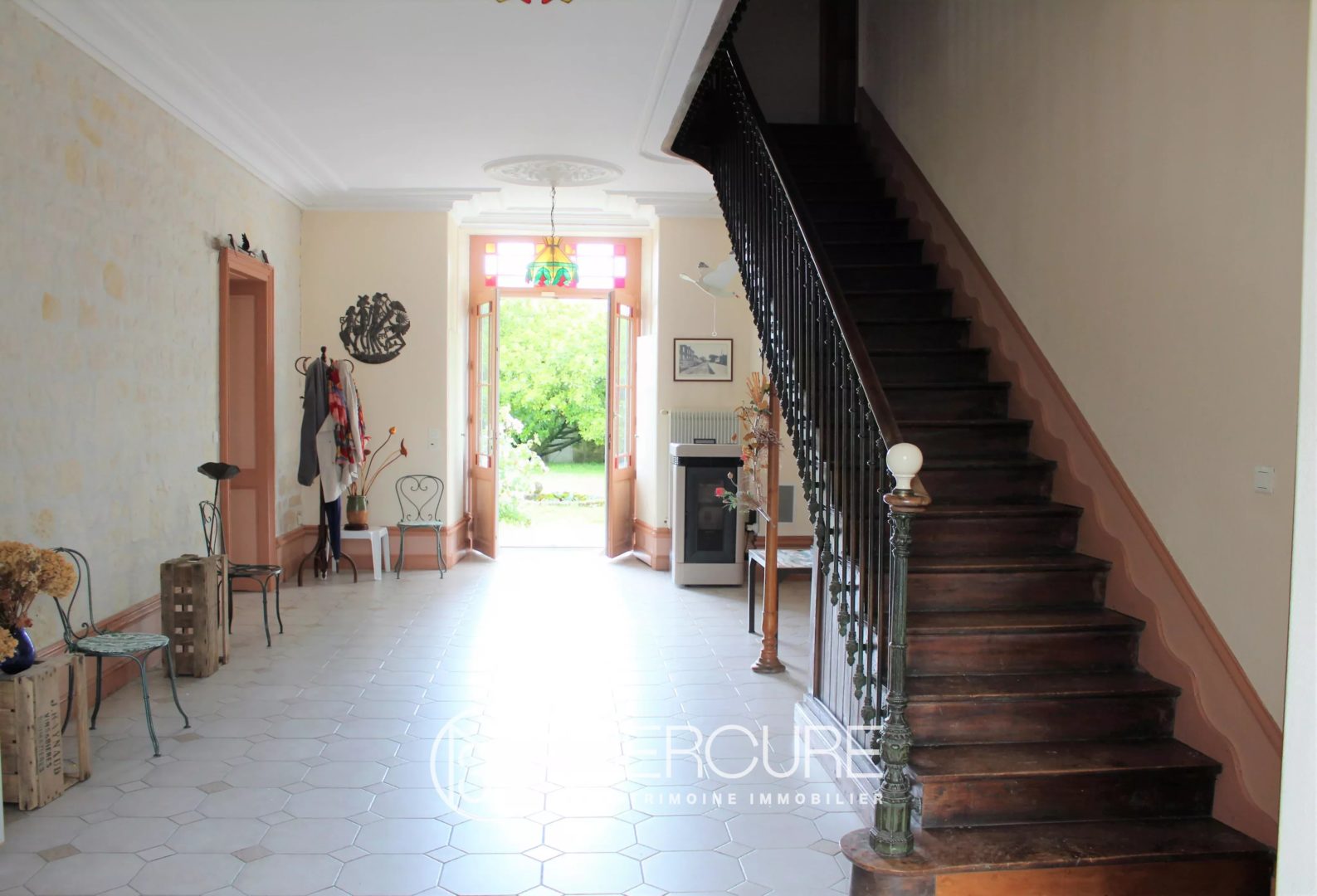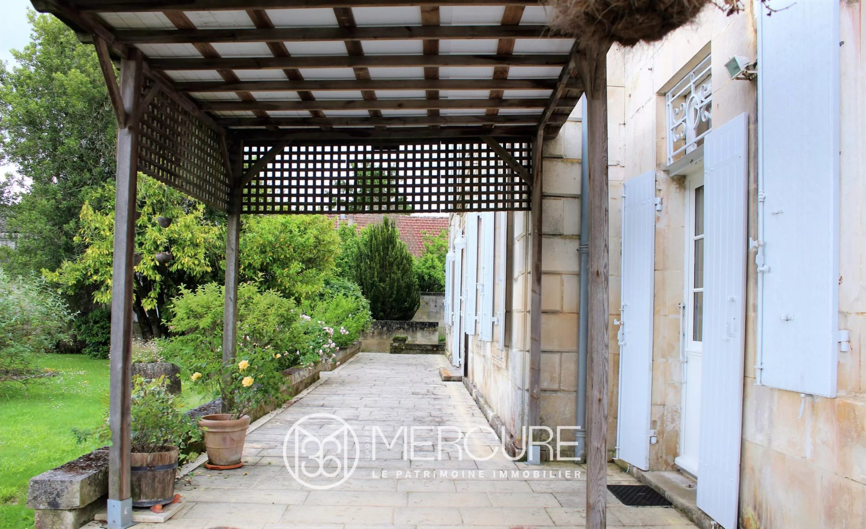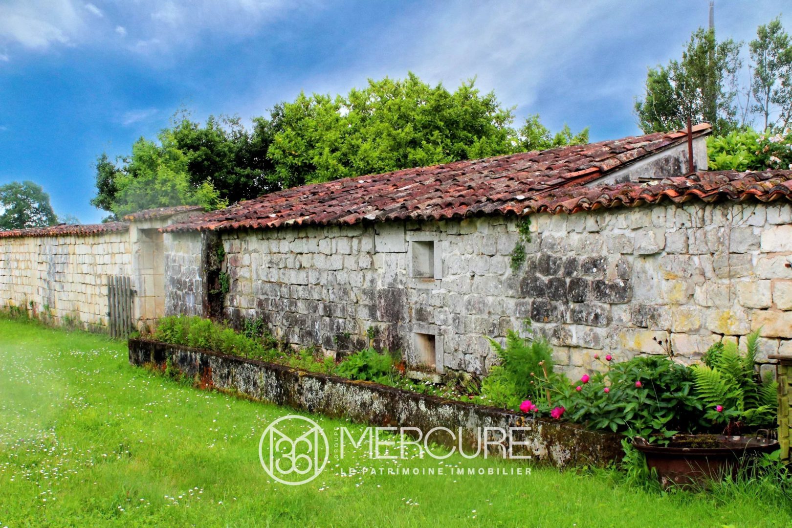 Located in the heart of a lovely village of the roman Saintonge, just 15 minutes from Saintes and 30 minutes from the coast, this 19th C. character house, offers all the features of a “maison de maître”, with its outbuildings, its wooded and flowery park, its ornemental pond, its parquet floors, its cellar, its stoop, its moulded ceilings, its marble fireplaces. The whole house was renovated and carefully maintained, offering double glazing windows, mains drains, oil-fired central heating.