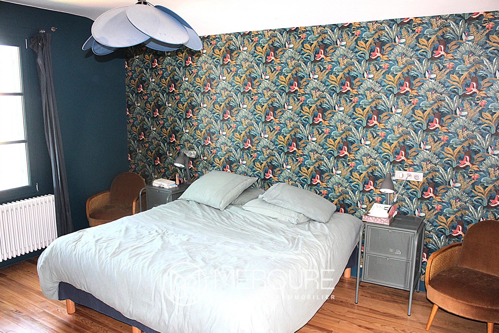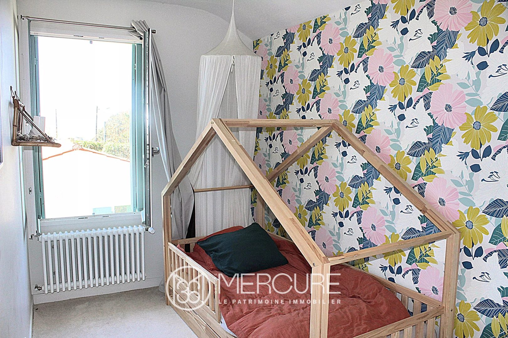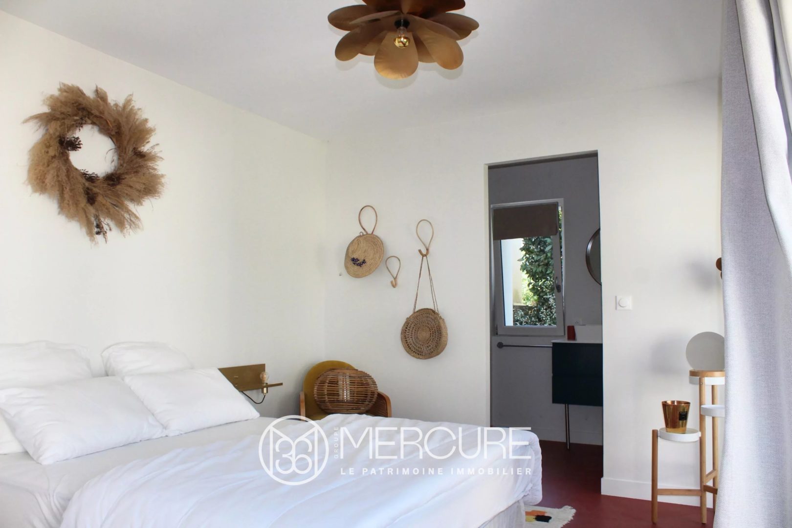 The sleeping area features three tastefully decorated bedrooms, including a superb master suite with bathroom and dressing room, a charming children’s bedroom, and a garden-level bedroom with a terrace and private shower room and toilet.