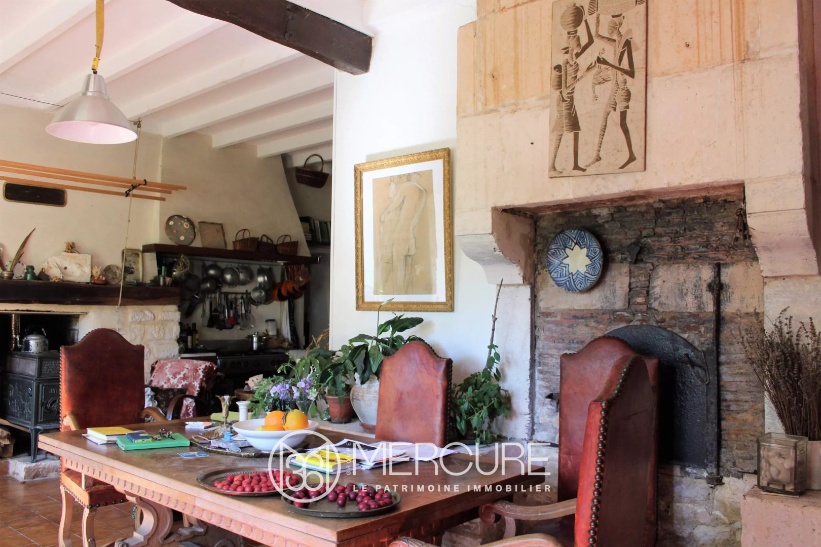 This character house of about 280 sq.mt. as living space with a flowery garden, has a kitchen with dining space which an authentic bread oven was preserved, a cellar, a comfortable living room with fireplace, visible beams and parquet floor, and a dining room. With a shower room on this level of the house, a bedroom on garden floor could be considered to be created. Most of the rooms benefit from a direct outdoor access. You get upstairs by two staircases. On this level, we have five bedrooms and a study, two shower rooms to welcome family and friends. A country garden, enclosed with walls, provides full privacy. It offers a listed dovecote and several outbuildings : barn, stables, workshop, store room. The all is set in 9380 sq.mt. of grounds consisting of garden and wooded areas in peaceful environment.