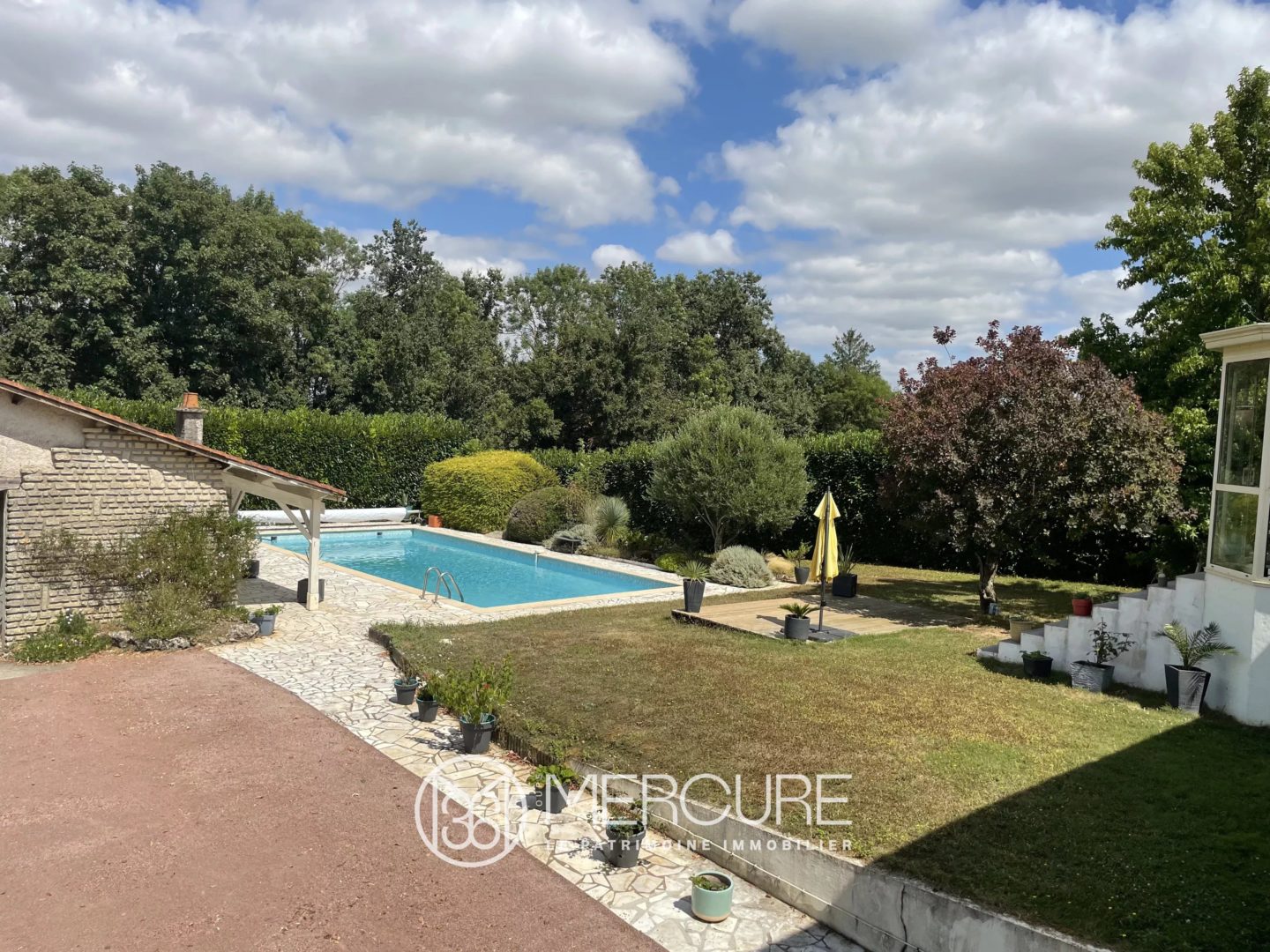 SOLE AGENT. At the gates and west of NIORT, this pleasant property consists of a bright dwelling house of 180 sq.mt. as living space on a semi-buried basement, and beautiful outbuildings, surrounded by nearly 1 acre of wooded, landscaped and enclosed land, with a 13x7m swimming pool. Including a living room with fireplace and a dining room extended by a veranda, the house also has three bedrooms and two bathrooms. Offering a serene and nuisance-free setting, this house has been designed to take full advantage of its exteriors and its numerous amenities related to relaxation. Located 10 minutes from COULON in the MARAIS POITEVIN, this house will prove ideal for tourist accommodation.