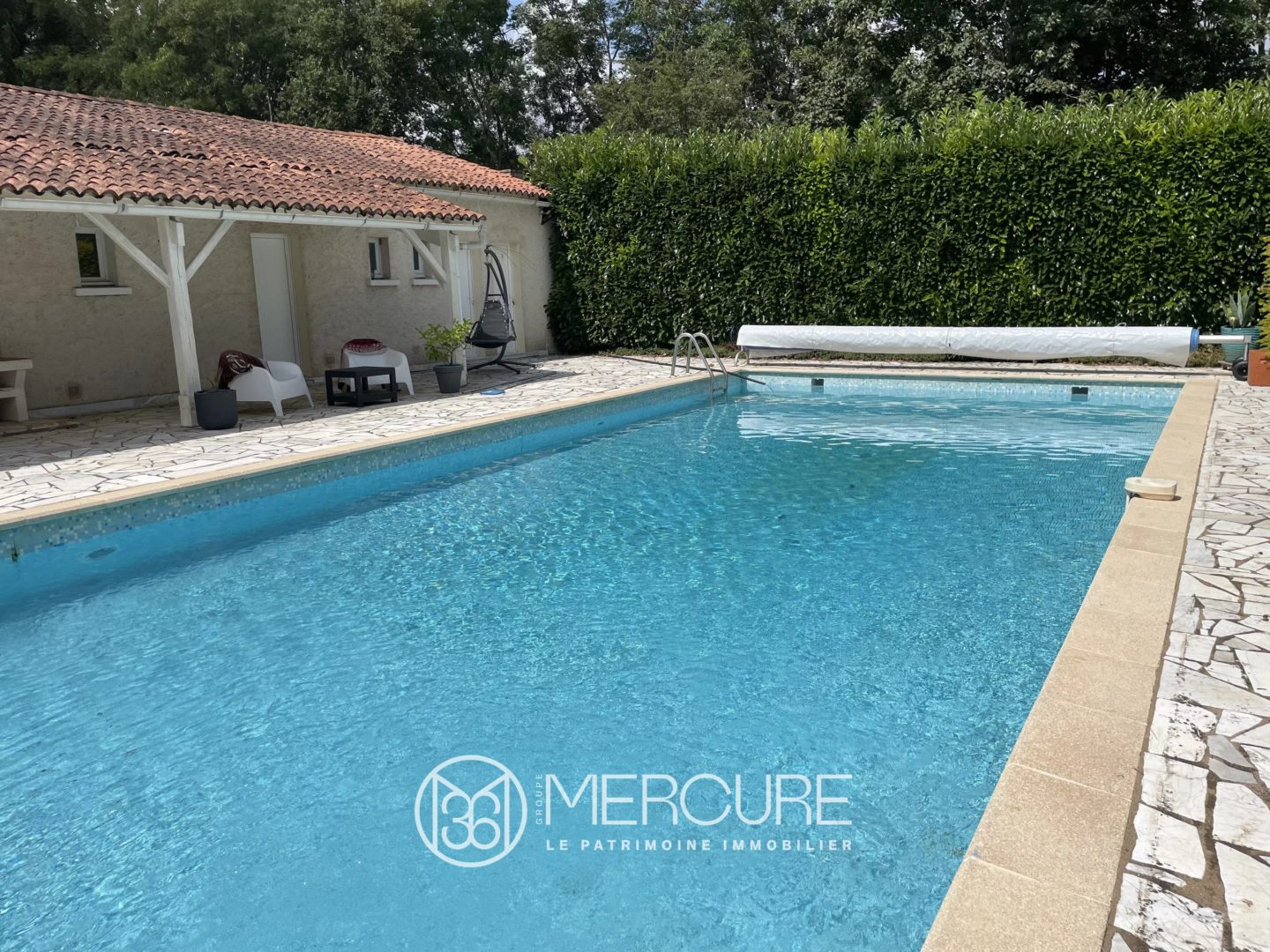 At the rear of the house, an exotic wood terrace (2023), and a 13x7m swimming pool surrounded by a stone beach, benefiting from good exposure. Winter cover and summer cover. Depth: 1.20 to 2.20m. Alarm. Glass paste coating. Chlorine treatment.