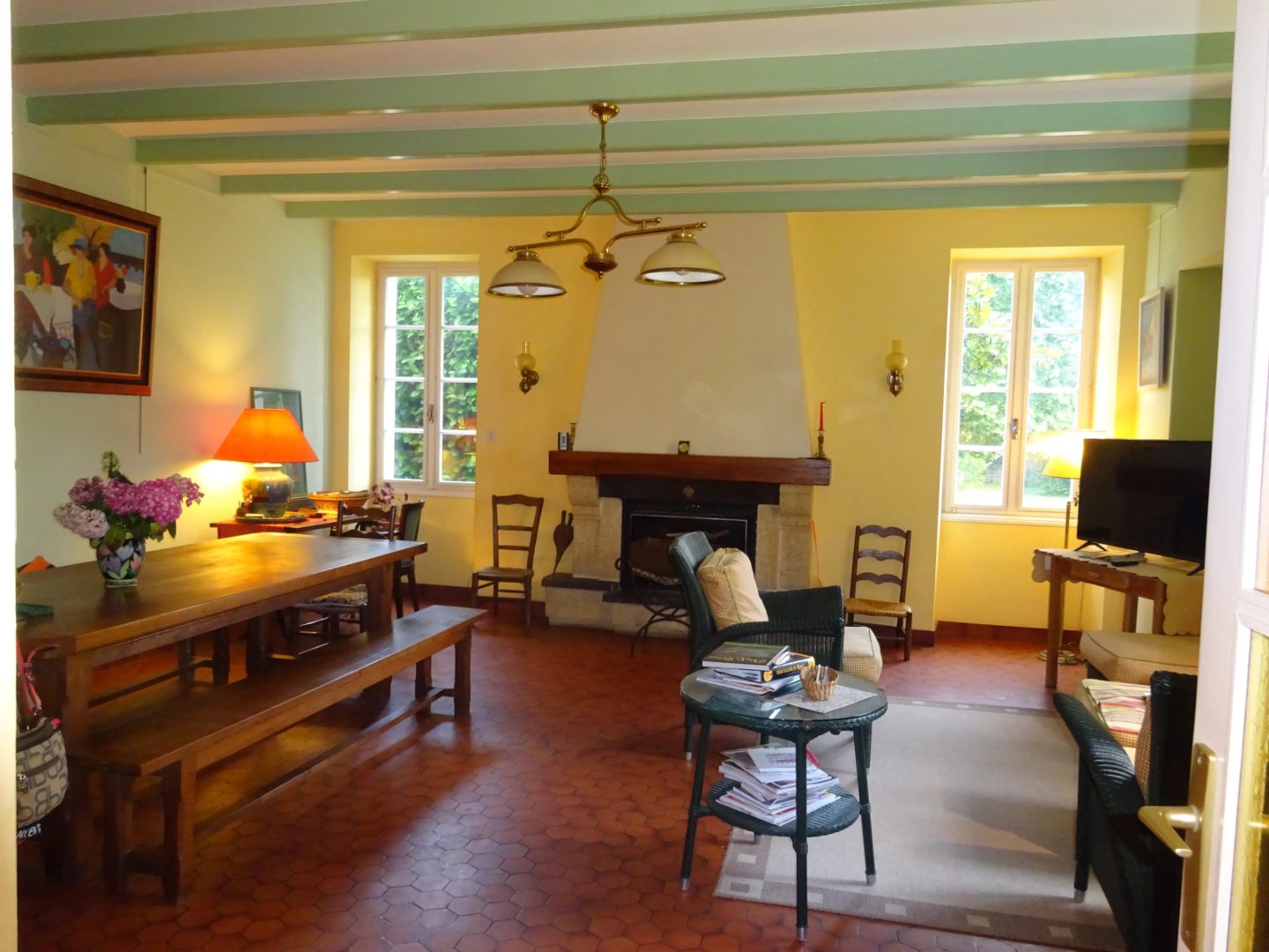 – Living room of 32 m², fireplace with insert, painted beams (height under ceiling : 2 , 64 m)