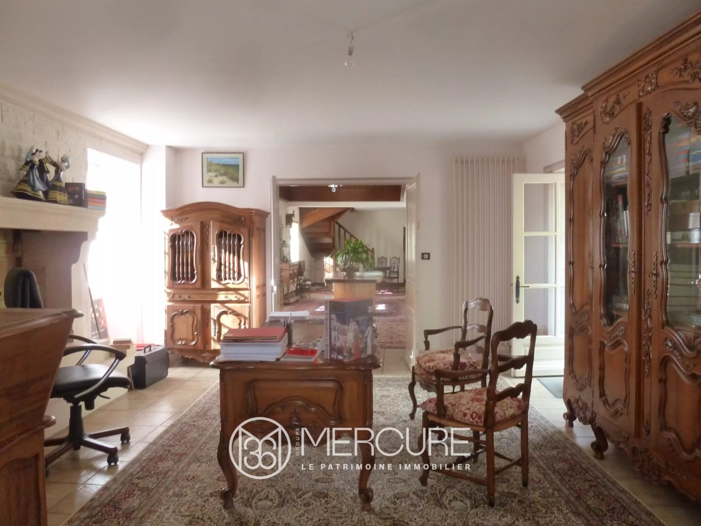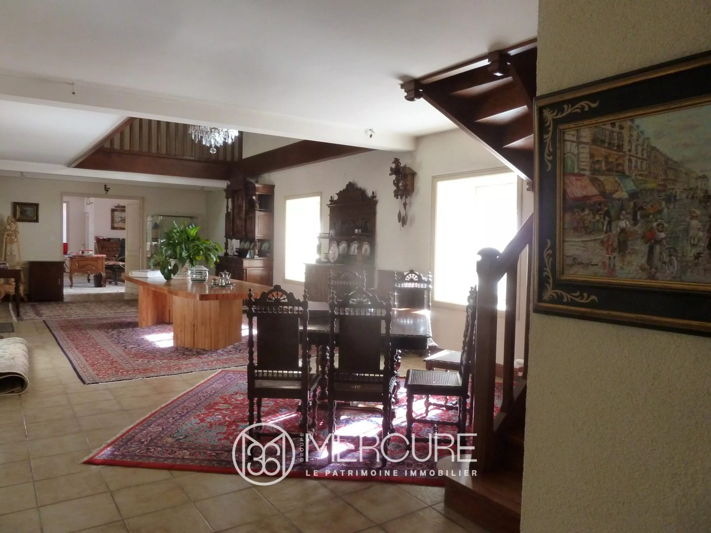 – 54 m² dining room, large bay window, wooden staircase leading to first floor (height under ceiling : 2.60 m)